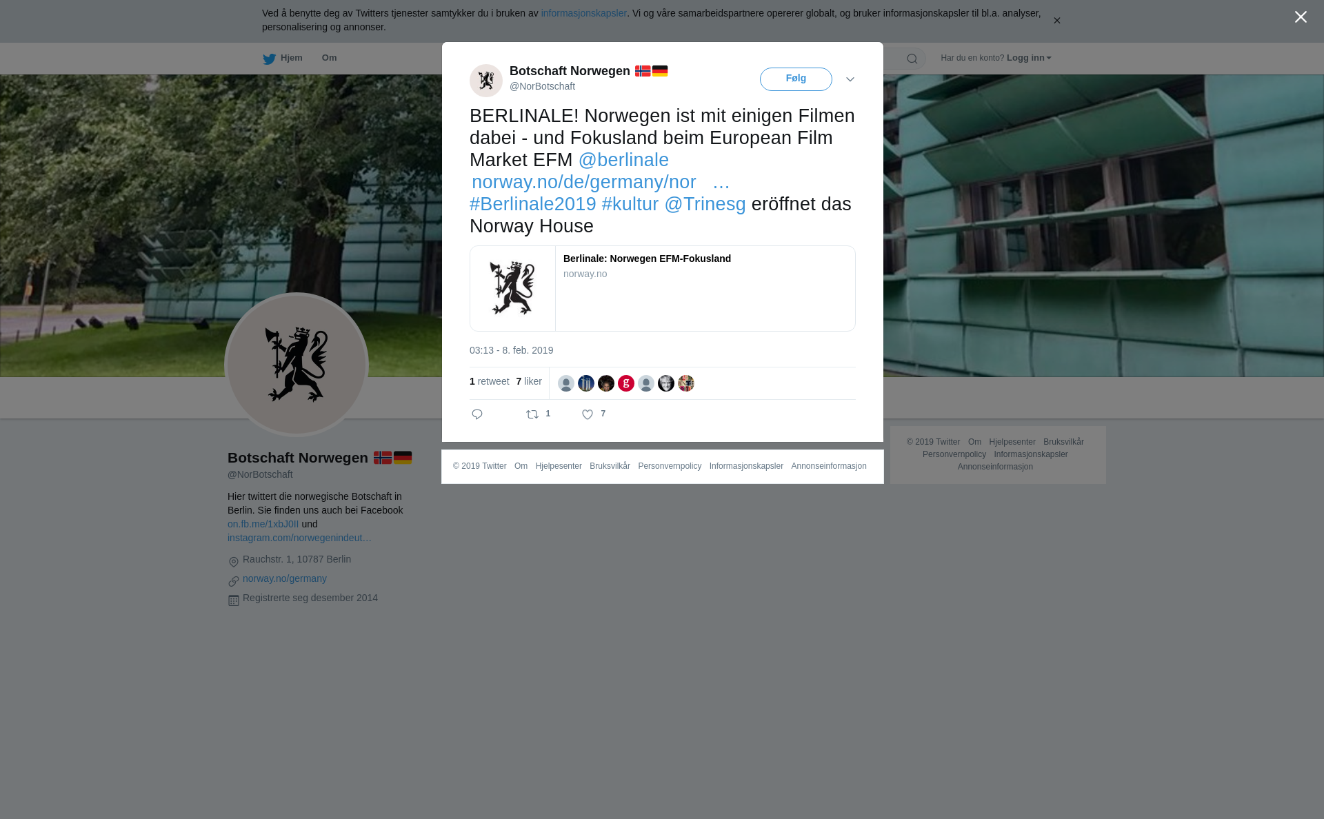 RT @NorBotschaft: BERLINALE! Norwegen ist mit einigen Filmen dabei - und Fokusland beim European Film Market EFM @berlinale https://t.co/5wW7n0XPp7 #Berlinale2019 #kultur @Trinesg eröffnet das Norway House