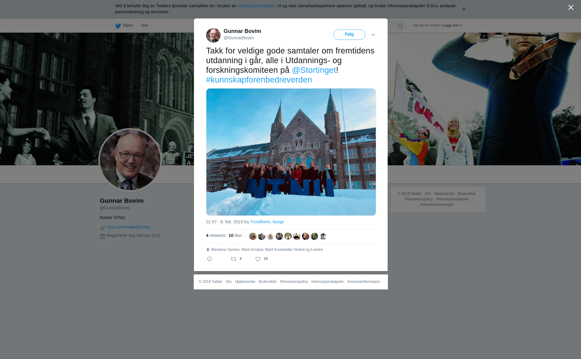 RT @GunnarBovim: Takk for veldige gode samtaler om fremtidens utdanning i går, alle i Utdannings- og forskningskomiteen på @Stortinget! #kunnskapforenbedreverden https://t.co/xwYHiETmsK