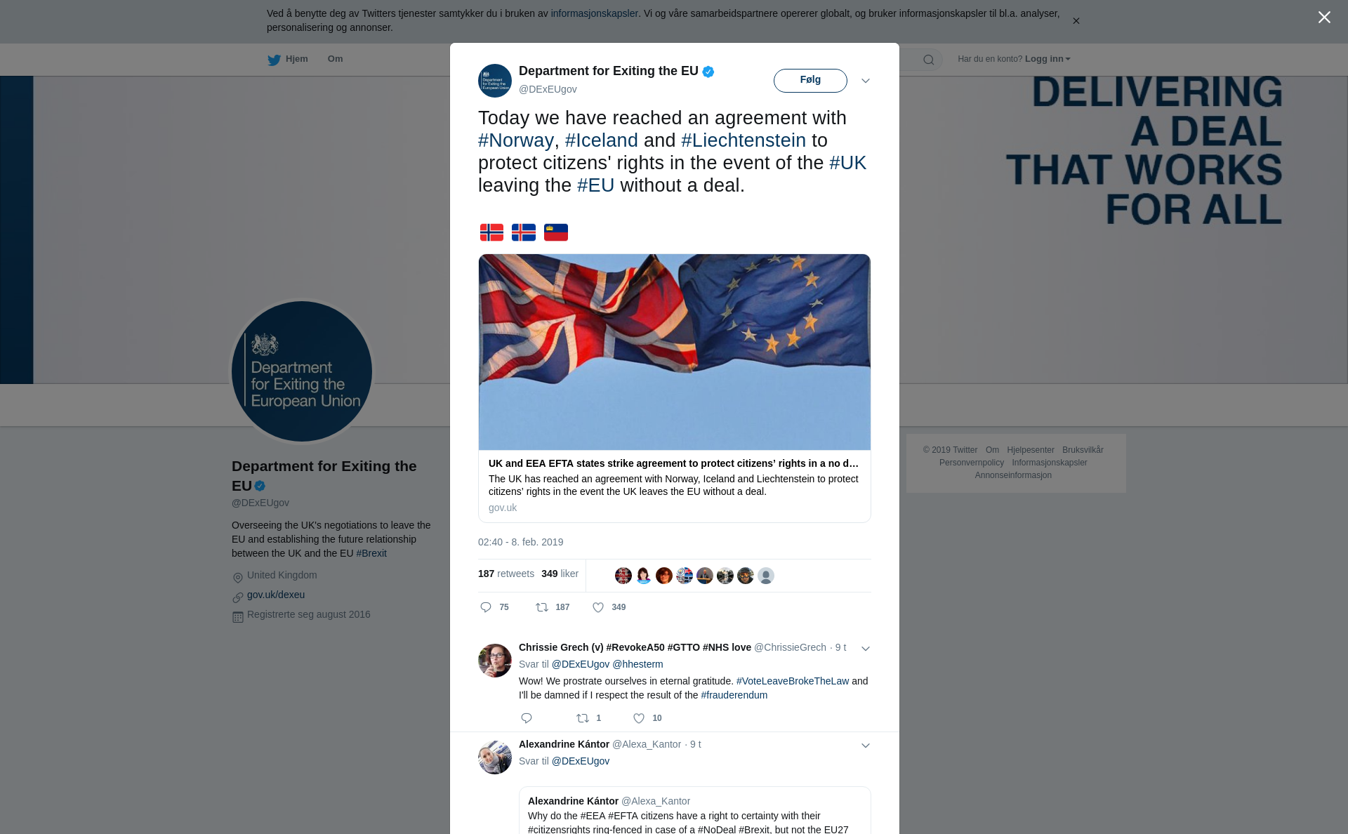 RT @DExEUgov: Today we have reached an agreement with #Norway, #Iceland and #Liechtenstein to protect citizens' rights in the event of the #UK leaving the #EU without a deal.