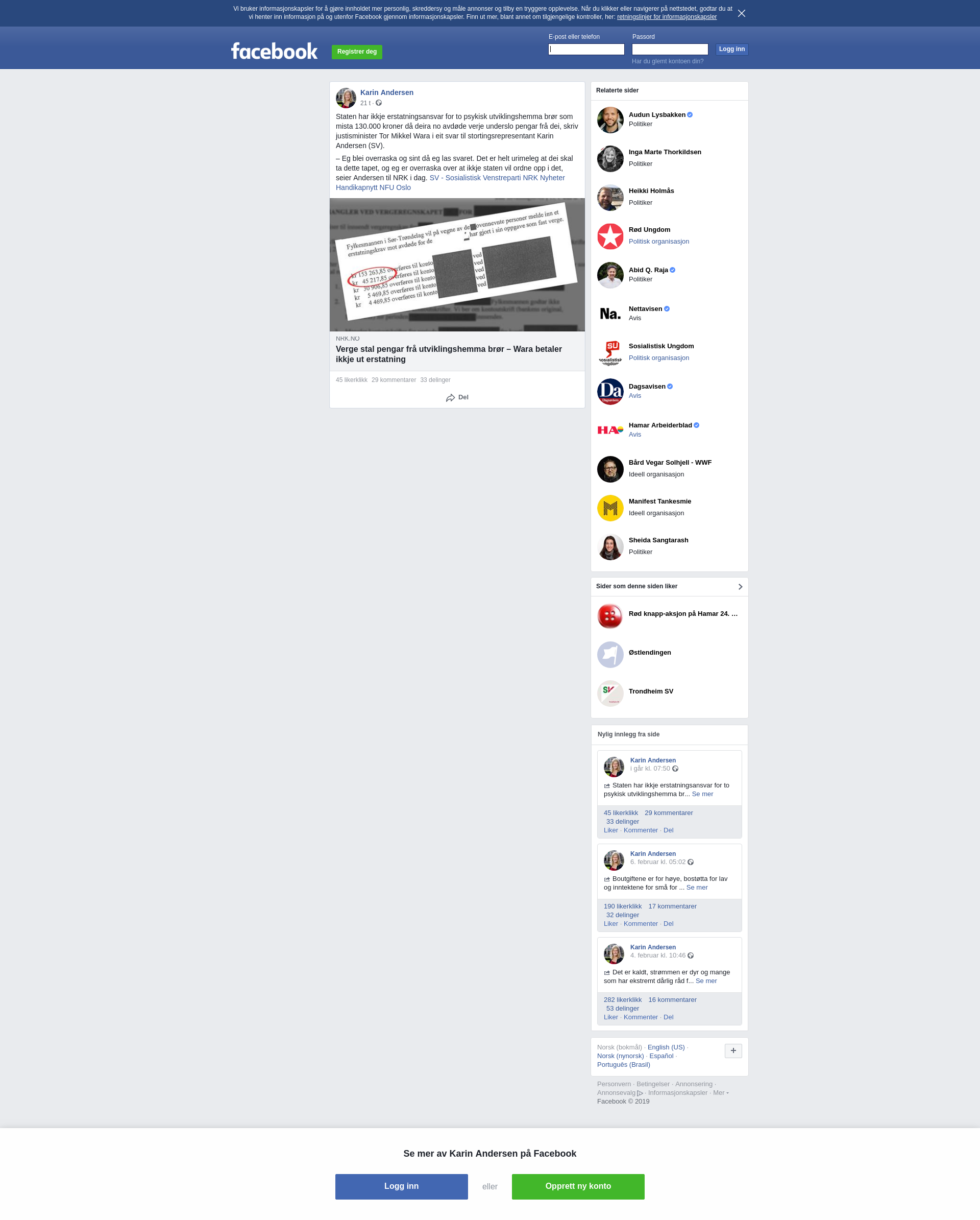 – Eg blei overraska og sint då eg las svaret. Det er helt urimeleg at dei skal ta dette tapet, og eg er overraska over at ikkje staten vil ordne opp i det, seier Andersen til NRK i dag. SV - Sosialistisk Venstreparti NRK Nyheter Handikapnytt NFU Oslo