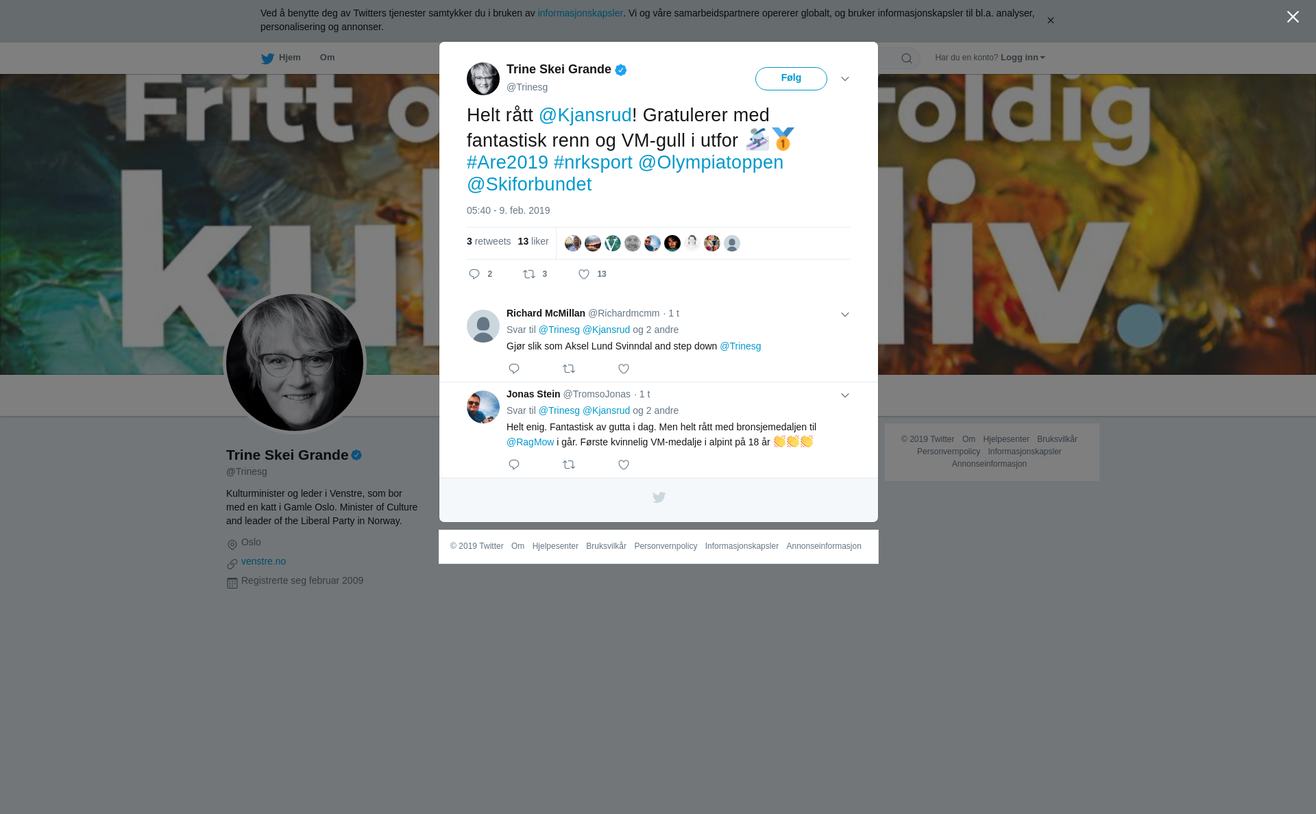 RT @Trinesg: Helt rått @Kjansrud! Gratulerer med fantastisk renn og VM-gull i utfor ⛷🥇 #Are2019 #nrksport @Olympiatoppen @Skiforbundet