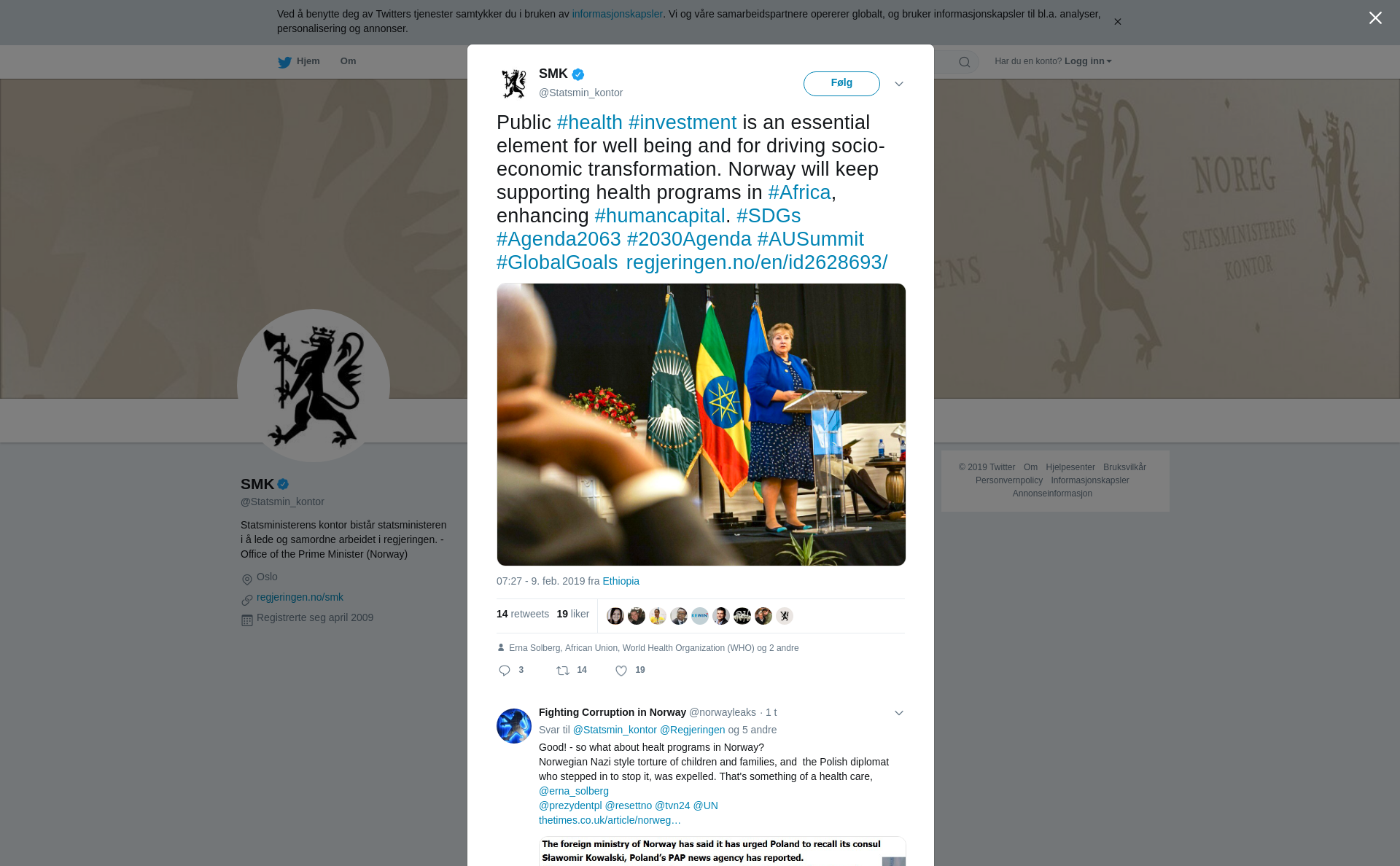 RT @Statsmin_kontor: Public #health #investment is an essential element for well being and for driving socio-economic transformation. Norway will keep supporting health programs in #Africa, enhancing #humancapital. #SDGs #Agenda2063 #2030Agenda #AUSummit #GlobalGoals https://t.co/Wkt9Q5utNC https://t.co/RaCt0EwJjX