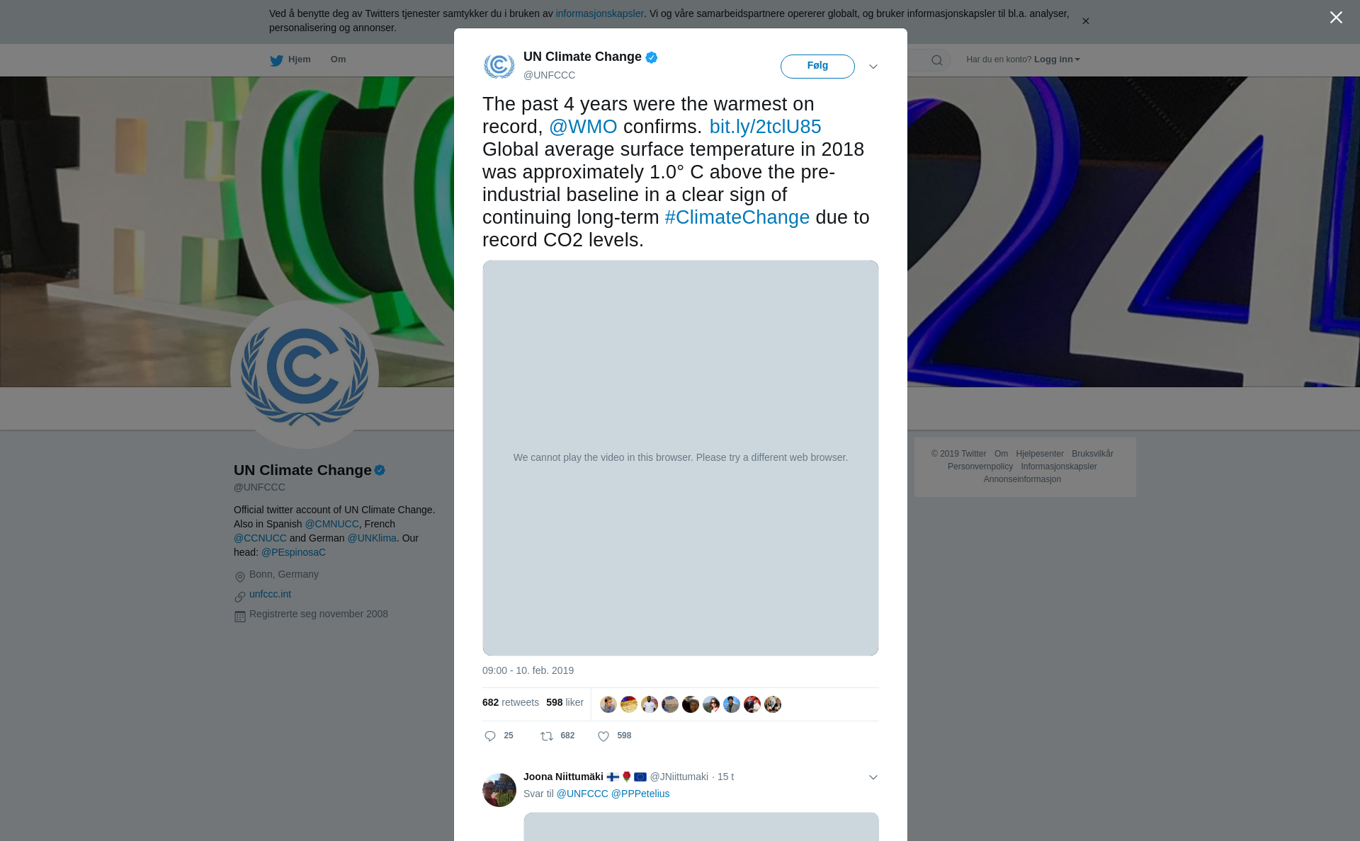 RT @UNFCCC: The past 4 years were the warmest on record, @WMO confirms. https://t.co/mjeLvTU1fA Global average surface temperature in 2018 was approximately 1.0° C above the pre-industrial baseline in a clear sign of continuing long-term #ClimateChange due to record CO2 levels. https://t.co/ri8qyzagsm