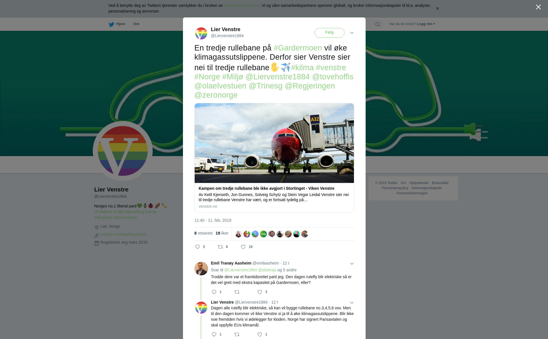 RT @Liervenstre1884: En tredje rullebane på #Gardermoen vil øke klimagassutslippene. Derfor sier Venstre sier nei til tredje rullebane✋✈️#kilma #venstre #Norge #Miljø @Liervenstre1884 @tovehoffis @olaelvestuen @Trinesg @Regjeringen @zeronorge https://t.co/RBaQsgD5zF