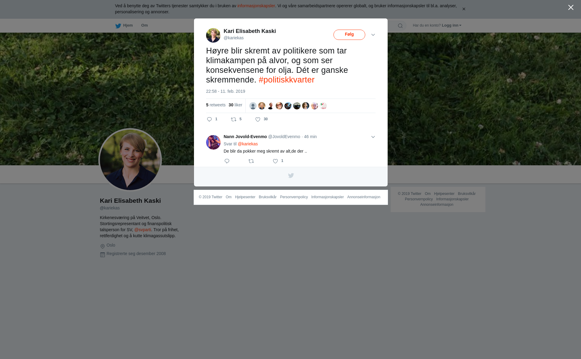 Høyre blir skremt av politikere som tar klimakampen på alvor, og som ser konsekvensene for olja. Dét er ganske skremmende. #politiskkvarter