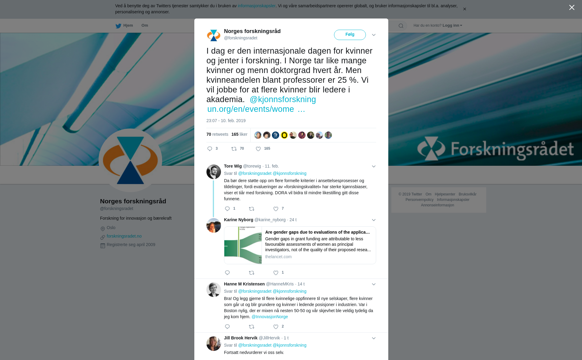 RT @forskningsradet: I dag er den internasjonale dagen for kvinner og jenter i forskning. I Norge tar like mange kvinner og menn doktorgrad hvert år. Men kvinneandelen blant professorer er 25 %. Vi vil jobbe for at flere kvinner blir ledere i akademia. @kjonnsforskning https://t.co/QBtGWdmGIC