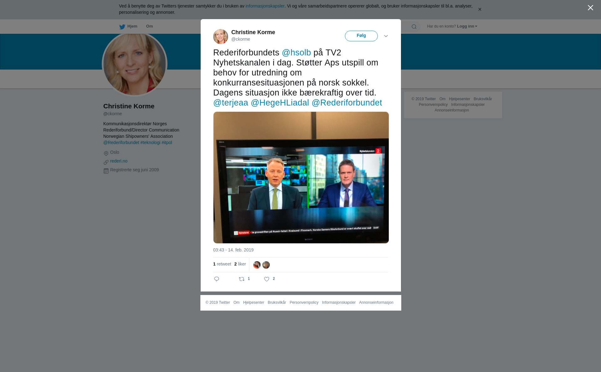 RT @ckorme: Rederiforbundets @hsolb på TV2 Nyhetskanalen i dag. Støtter Aps utspill om behov for utredning om konkurransesituasjonen på norsk sokkel. Dagens situasjon ikke bærekraftig over tid. @terjeaa @HegeHLiadal @Rederiforbundet https://t.co/fFE9ab0Ftf