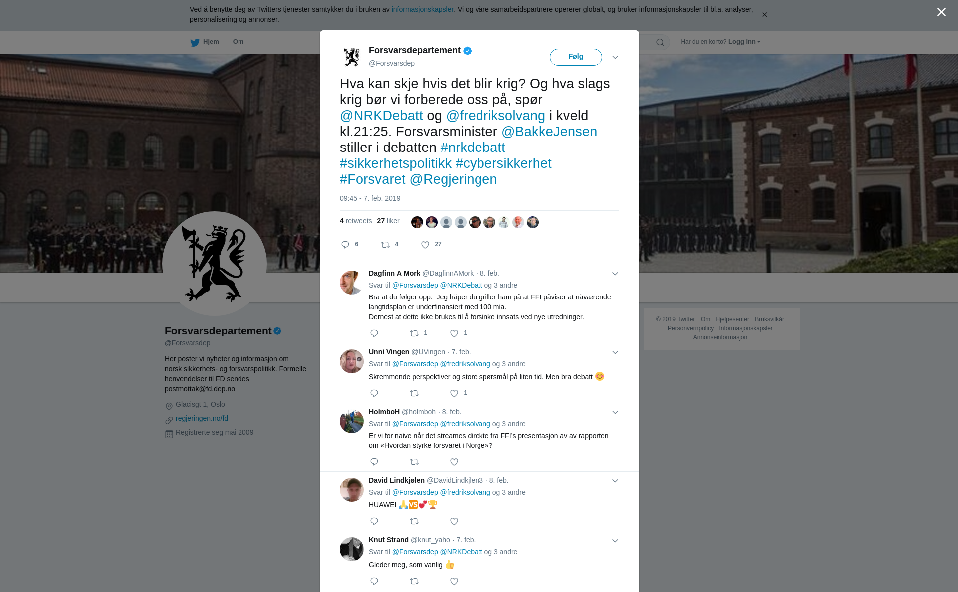 Hva kan skje hvis det blir krig? Og hva slags krig bør vi forberede oss på, spør @NRKDebatt og @fredriksolvang i kveld kl.21:25. Forsvarsminister @BakkeJensen stiller i debatten #nrkdebatt #sikkerhetspolitikk #cybersikkerhet #Forsvaret @Regjeringen