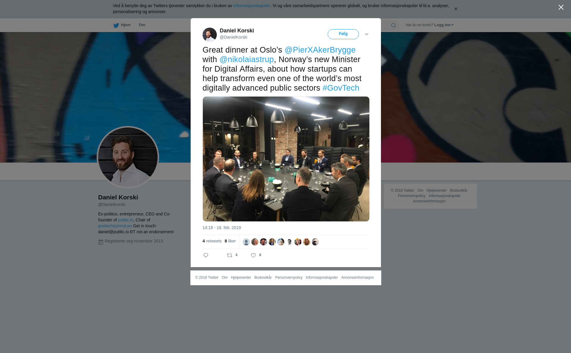 RT @DanielKorski: Great dinner at Oslo’s @PierXAkerBrygge with @nikolaiastrup, Norway’s new Minister for Digital Affairs, about how startups can help transform even one of the world’s most digitally advanced public sectors #GovTech https://t.co/v2iKtvWsLR