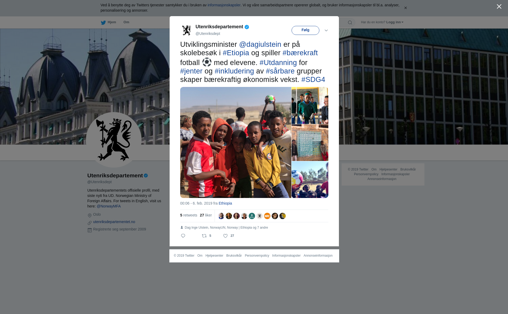 RT @Utenriksdept: Utviklingsminister @dagiulstein er på skolebesøk i #Etiopia og spiller #bærekraft fotball ⚽️ med elevene. #Utdanning for #jenter og #inkludering av #sårbare grupper skaper bærekraftig økonomisk vekst. #SDG4 https://t.co/2CwbfXb9FT