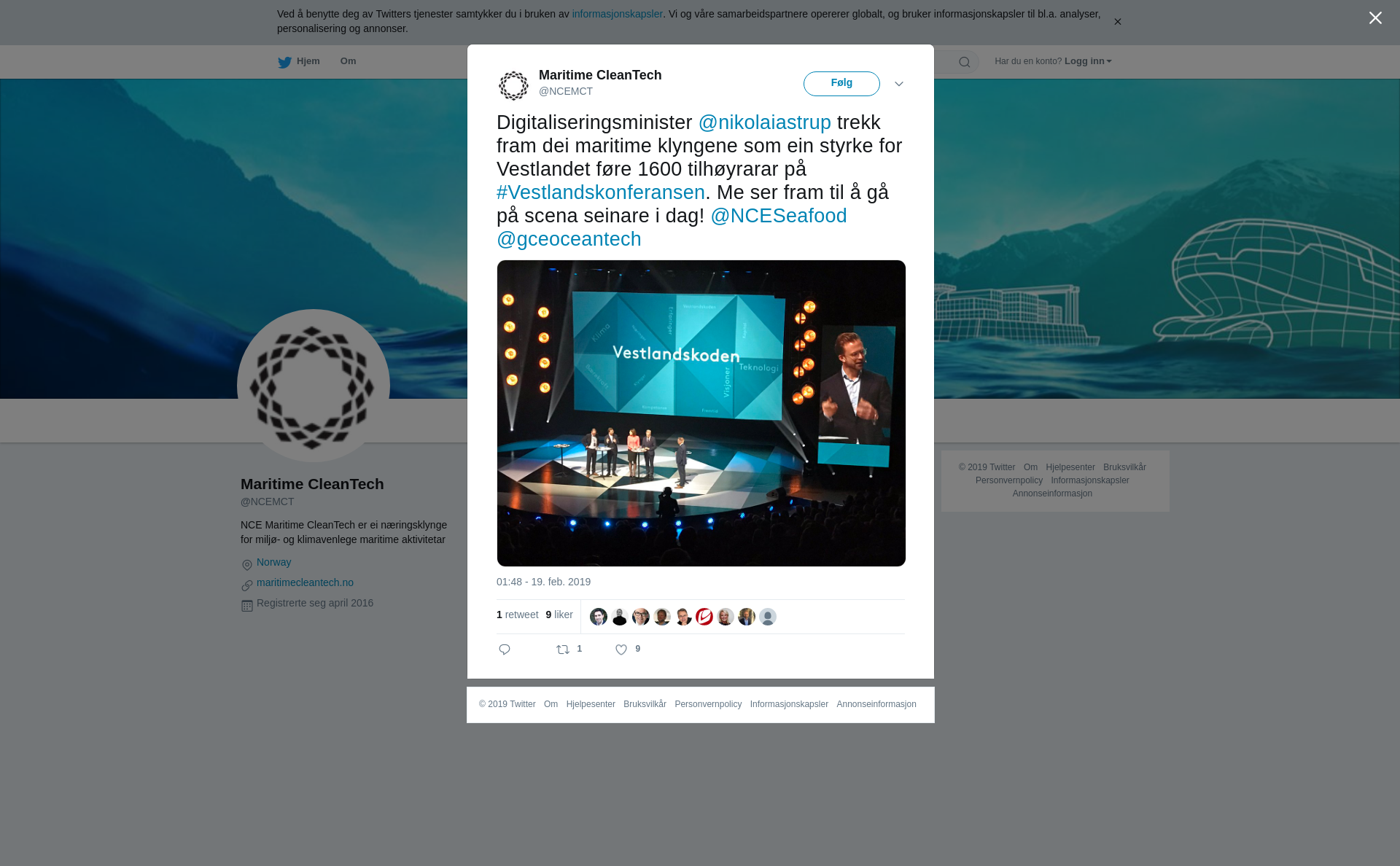 RT @NCEMCT: Digitaliseringsminister @nikolaiastrup trekk fram dei maritime klyngene som ein styrke for Vestlandet føre 1600 tilhøyrarar på #Vestlandskonferansen. Me ser fram til å gå på scena seinare i dag! @NCESeafood @gceoceantech https://t.co/az2yTQ7snt