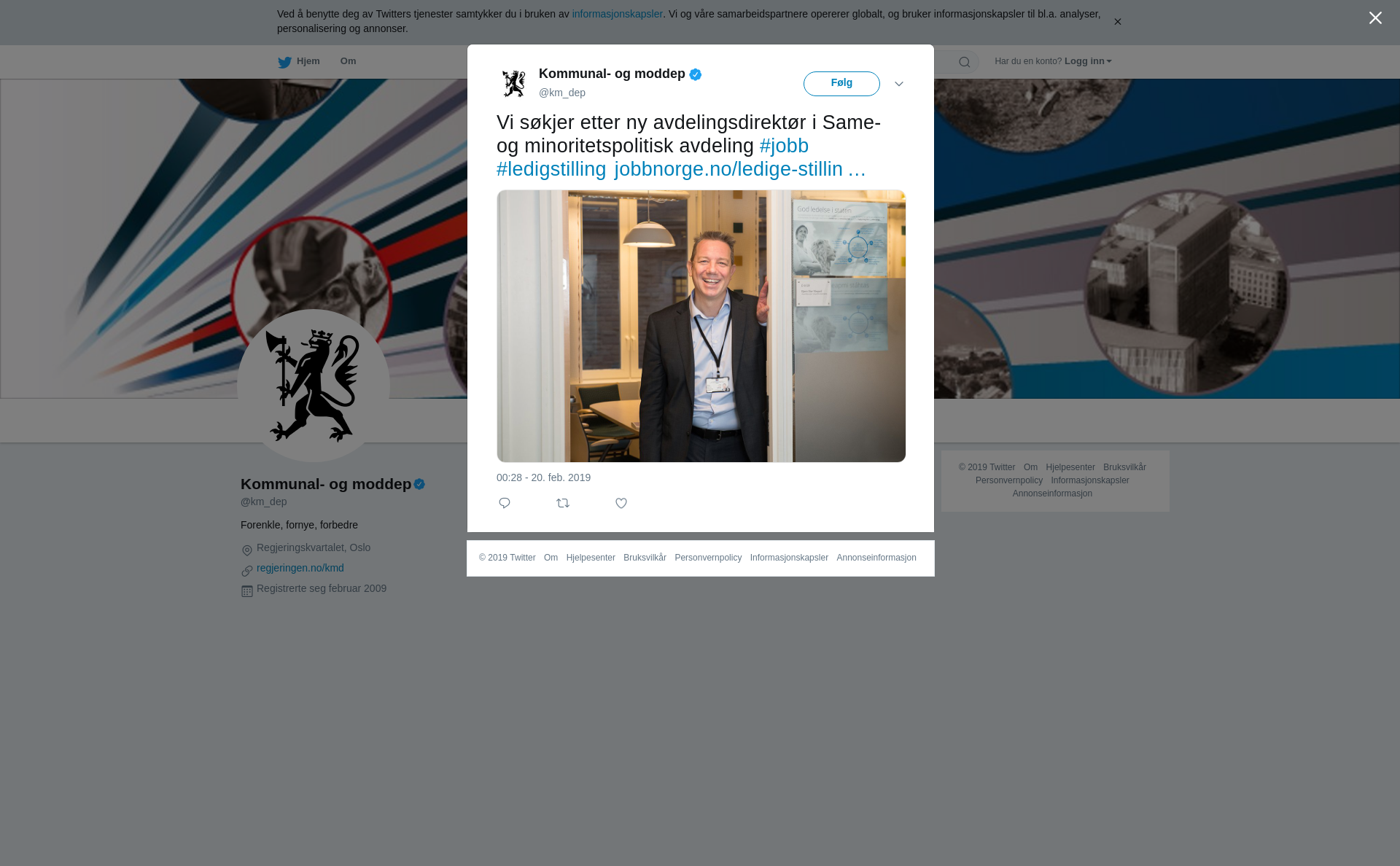 Vi søkjer etter ny avdelingsdirektør i Same- og minoritetspolitisk avdeling #jobb #ledigstilling https://t.co/hJXPXfNB3h https://t.co/bW9THdKIiz