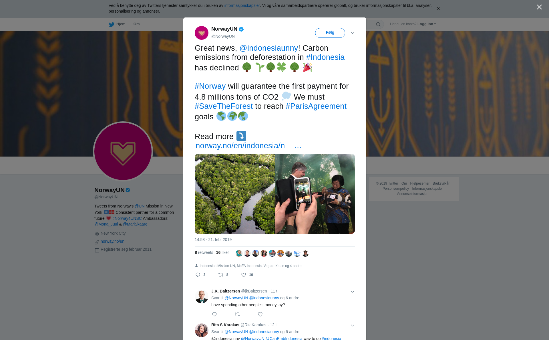 RT @NorwayUN: Great news, @indonesiaunny! Carbon emissions from deforestation in #Indonesia has declined 🌳 🌱🌳🍀 🌳 🎉 #Norway will guarantee…
