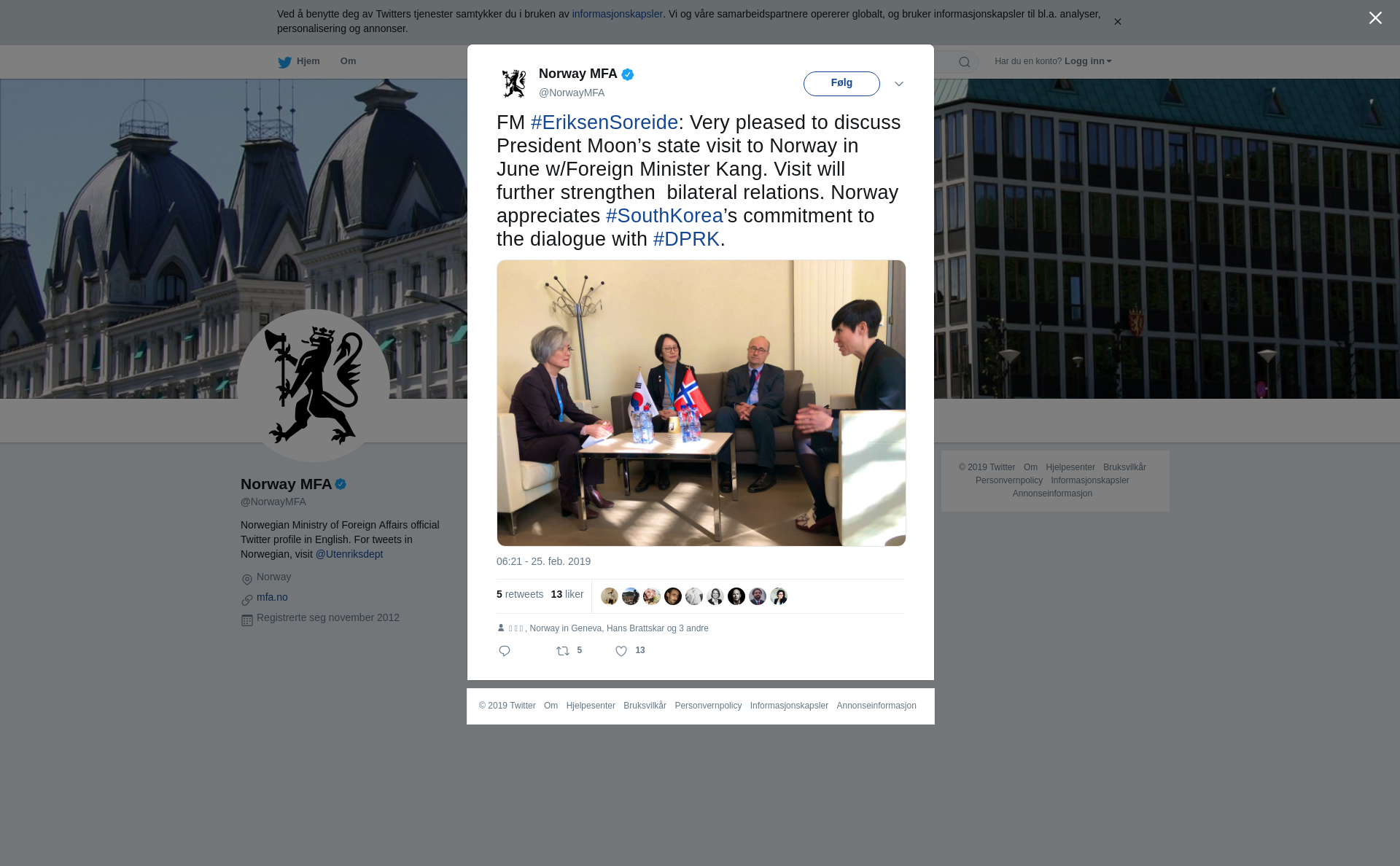 FM #EriksenSoreide: Very pleased to discuss President Moon’s state visit to Norway in June w/Foreign Minister Kang. Visit will further strengthen  bilateral relations. Norway appreciates #SouthKorea’s commitment to the dialogue with #DPRK. https://t.co/gCFXsjZ5rL