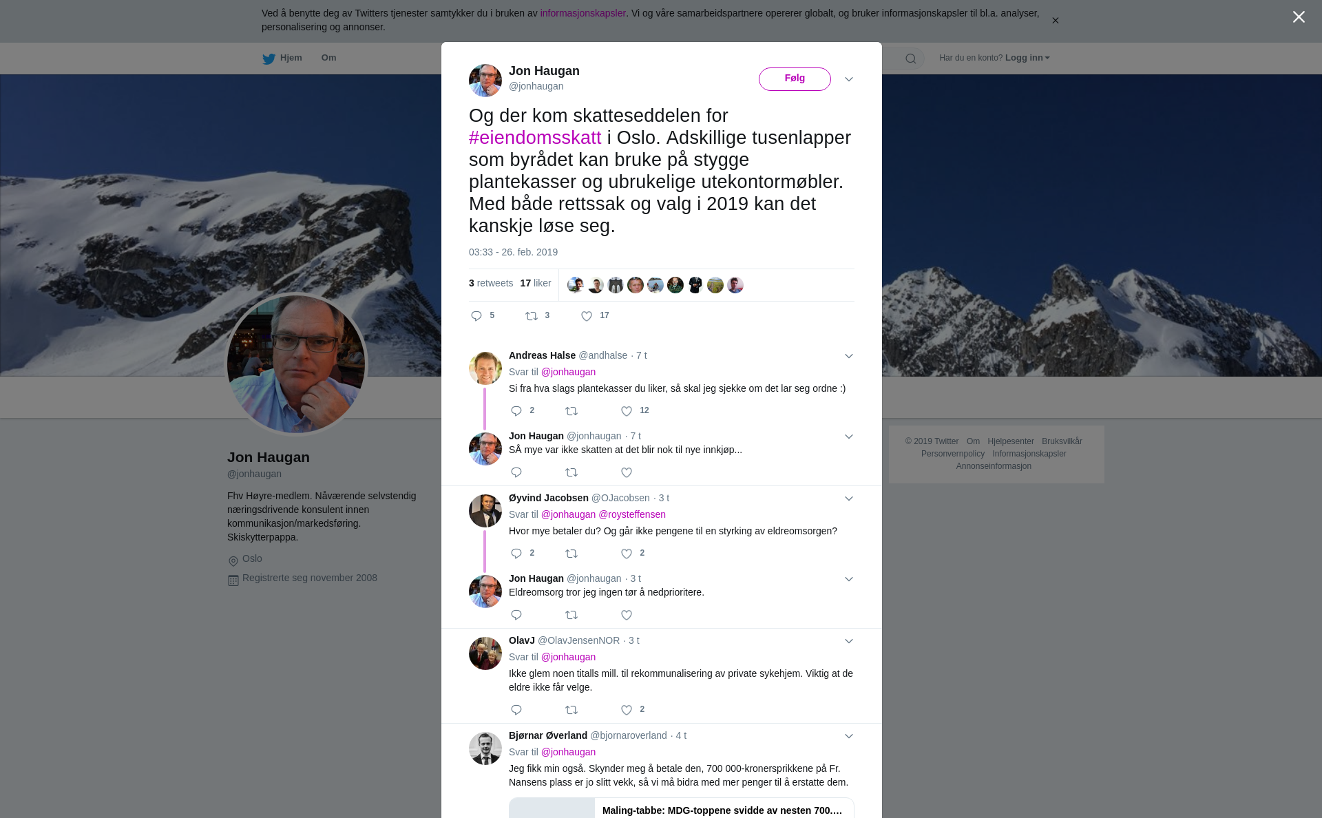 RT @jonhaugan: Og der kom skatteseddelen for #eiendomsskatt i Oslo. Adskillige tusenlapper som byrådet kan bruke på stygge plantekasser og ubrukelige utekontormøbler. Med både rettssak og valg i 2019 kan det kanskje løse seg.