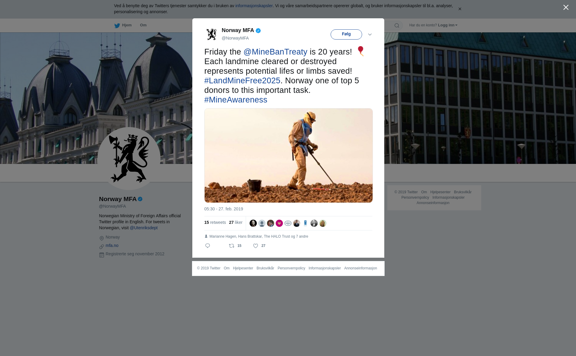 Friday the @MineBanTreaty is 20 years! 🎈Each landmine cleared or destroyed represents potential lifes or limbs saved! #LandMineFree2025. Norway one of top 5 donors to this important task. #MineAwareness https://t.co/sM8Jxp0gVz