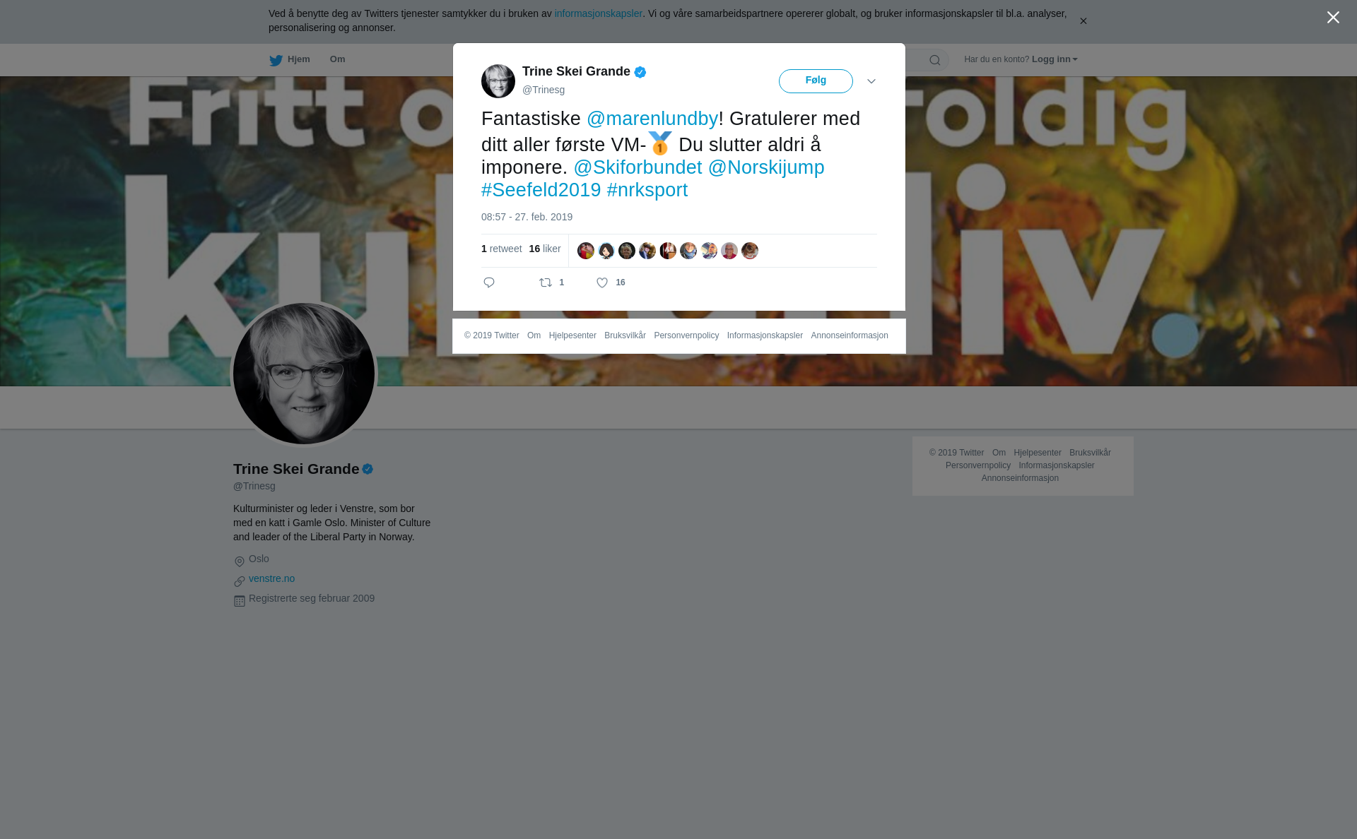 Fantastiske @marenlundby! Gratulerer med ditt aller første VM-🥇 Du slutter aldri å imponere. @Skiforbundet @Norskijump #Seefeld2019 #nrksport