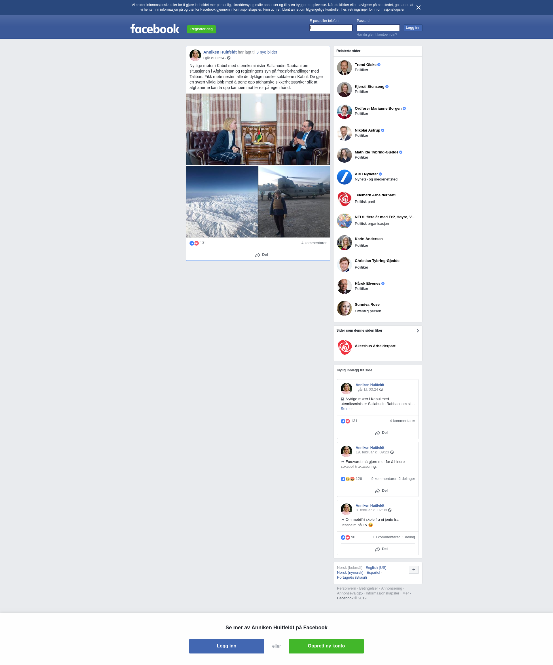 Nyttige møter i Kabul med utenriksminister Sallahudin Rabbani om situasjonen i Afghanistan og regjeringens syn på fredsforhandlinger med Taliban. Fikk møte nesten alle de dyktige norske soldatene i Kabul. De gjør en svært viktig jobb med å trene opp afghanske sikkerhetsstyrker slik at afghanerne kan ta opp kampen mot terror på egen hånd.
