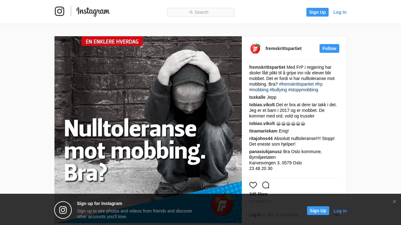 Med FrP i regjering har skoler fått plikt til å gripe inn når elever blir mobbet. Det er fordi vi har nulltoleranse mot mobbing. Bra? #fremskrittspartiet #frp #mobbing #bullying #stoppmobbing
