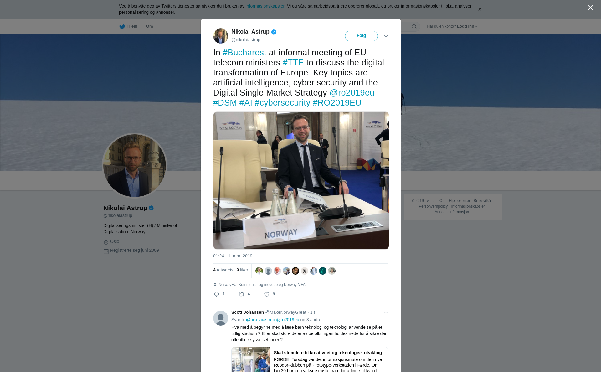 In #Bucharest at informal meeting of EU telecom ministers #TTE to discuss the digital transformation of Europe. Key topics are artificial intelligence, cyber security and the Digital Single Market Strategy @ro2019eu #DSM #AI #cybersecurity #RO2019EU https://t.co/CMBCcsYo7q