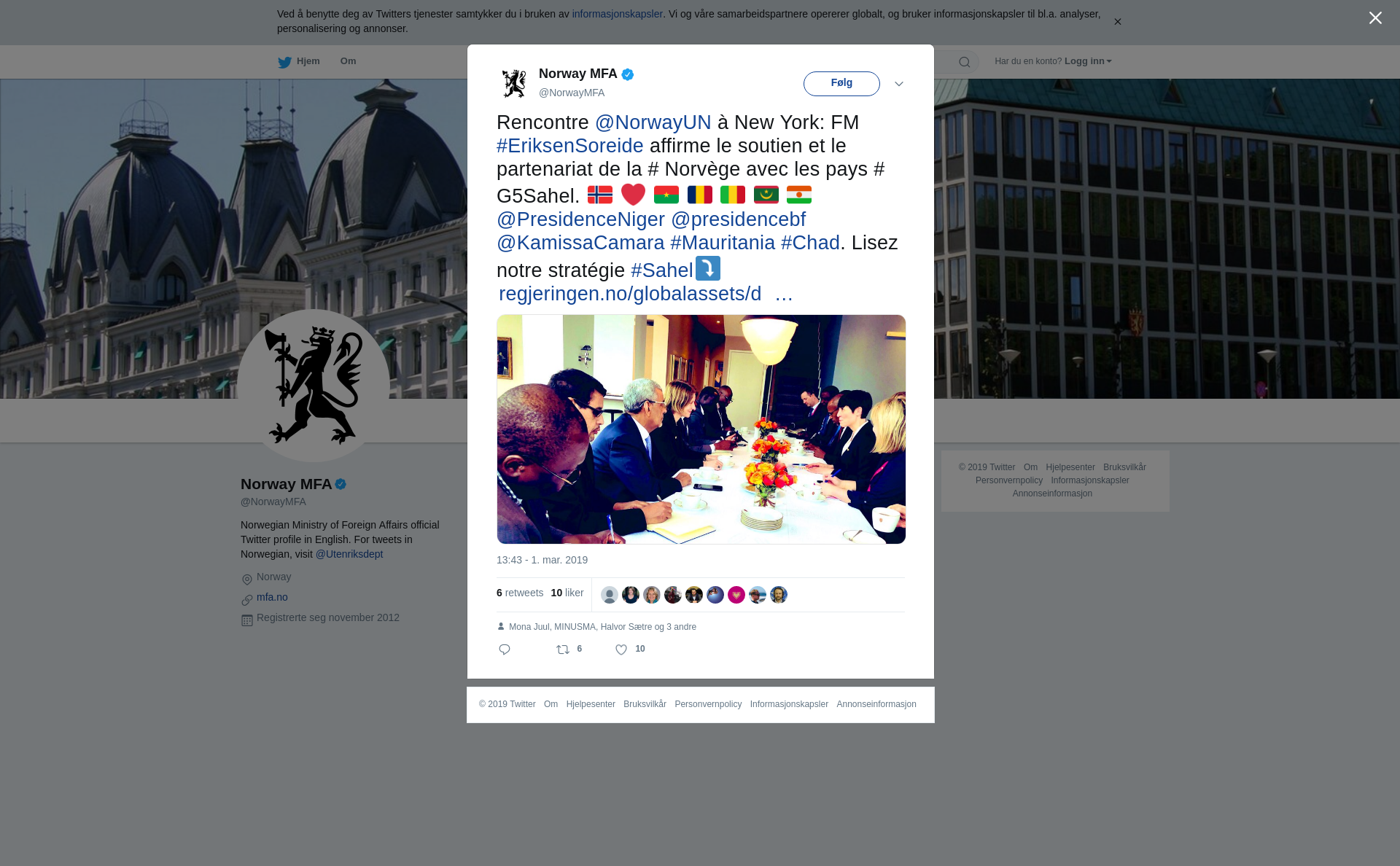 Rencontre @NorwayUN à New York: FM #EriksenSoreide affirme le soutien et le partenariat de la # Norvège avec les pays # G5Sahel. 🇳🇴 ❤️ 🇧🇫 🇹🇩 🇲🇱 🇲🇷 🇳🇪@PresidenceNiger @presidencebf @KamissaCamara #Mauritania #Chad. Lisez notre stratégie #Sahel⤵️ https://t.co/BM1aUMECHi https://t.co/jFZE1FRjYO