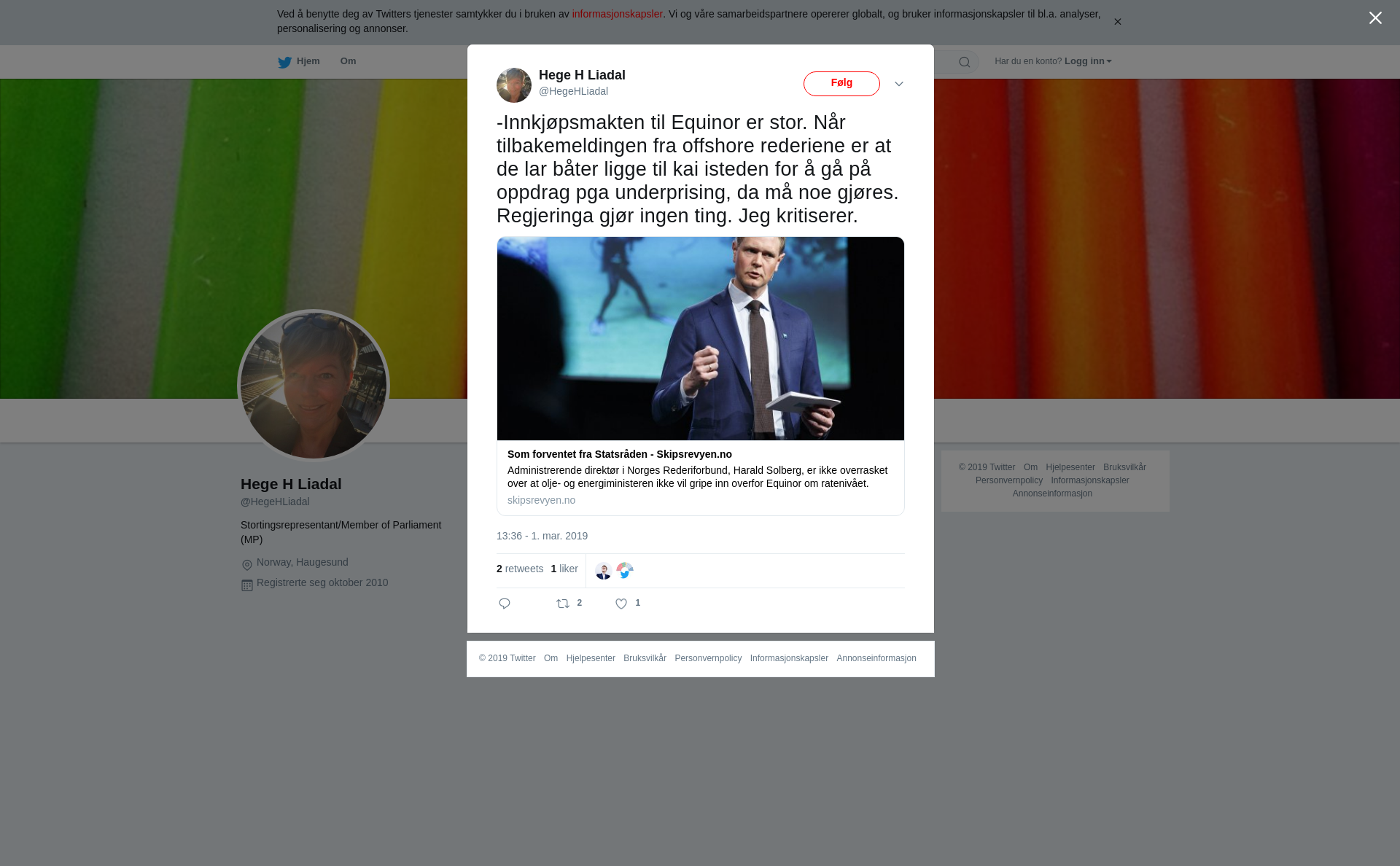 -Innkjøpsmakten til Equinor er stor. Når tilbakemeldingen fra offshore rederiene er at de lar båter ligge til kai isteden for å gå på oppdrag pga underprising, da må noe gjøres. Regjeringa gjør ingen ting. Jeg kritiserer. https://t.co/dw9ZdDgDvh