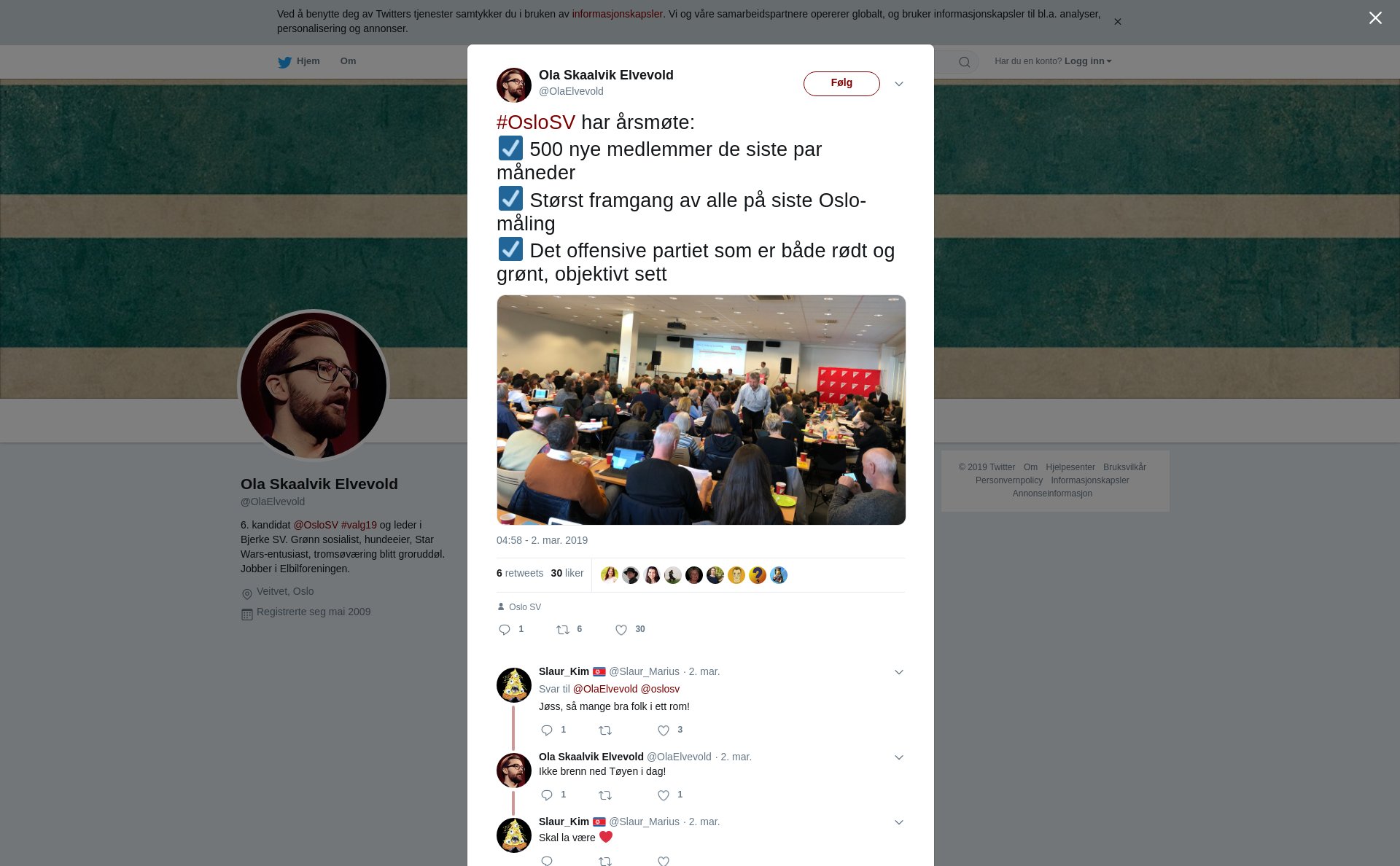 RT @OlaElvevold: #OsloSV har årsmøte: ☑️ 500 nye medlemmer de siste par måneder ☑️ Størst framgang av alle på siste Oslo-måling ☑️ Det offe…