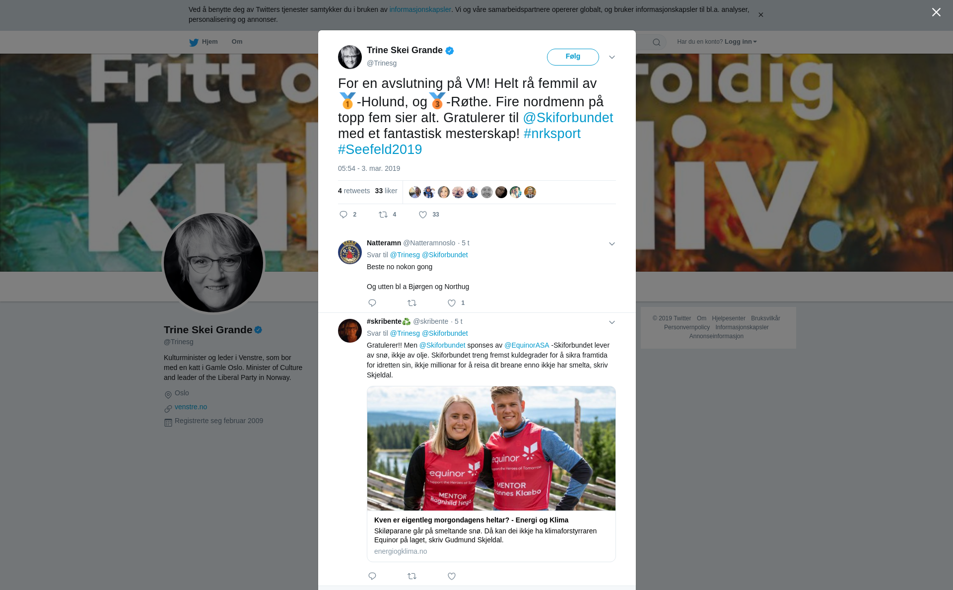 For en avslutning på VM! Helt rå femmil av 🥇-Holund, og🥉-Røthe. Fire nordmenn på topp fem sier alt. Gratulerer til @Skiforbundet med et fantastisk mesterskap! #nrksport #Seefeld2019