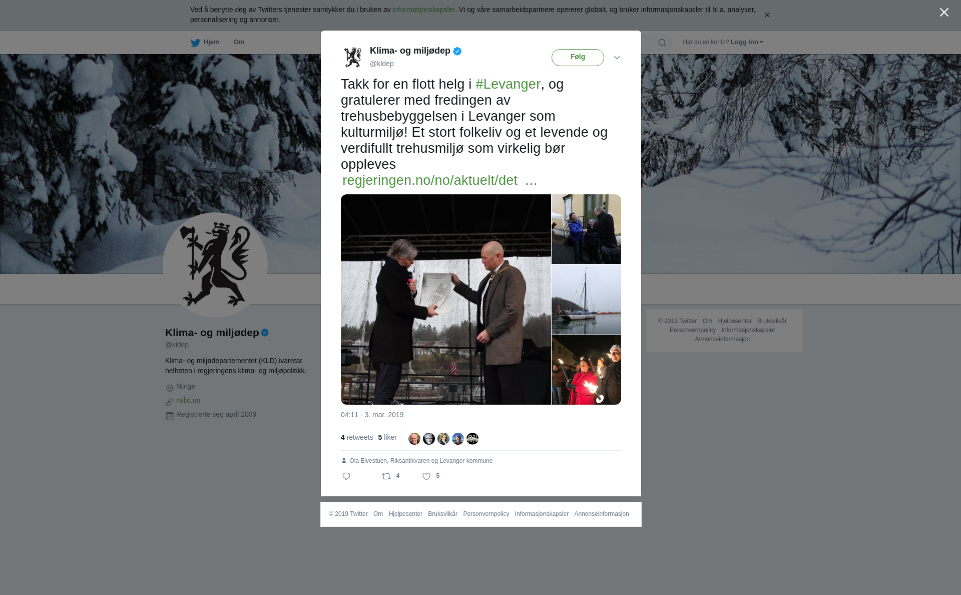RT @kldep: Takk for en flott helg i #Levanger, og gratulerer med fredingen av trehusbebyggelsen i Levanger som kulturmiljø! Et stort folkeliv og et levende og verdifullt trehusmiljø som virkelig bør oppleves