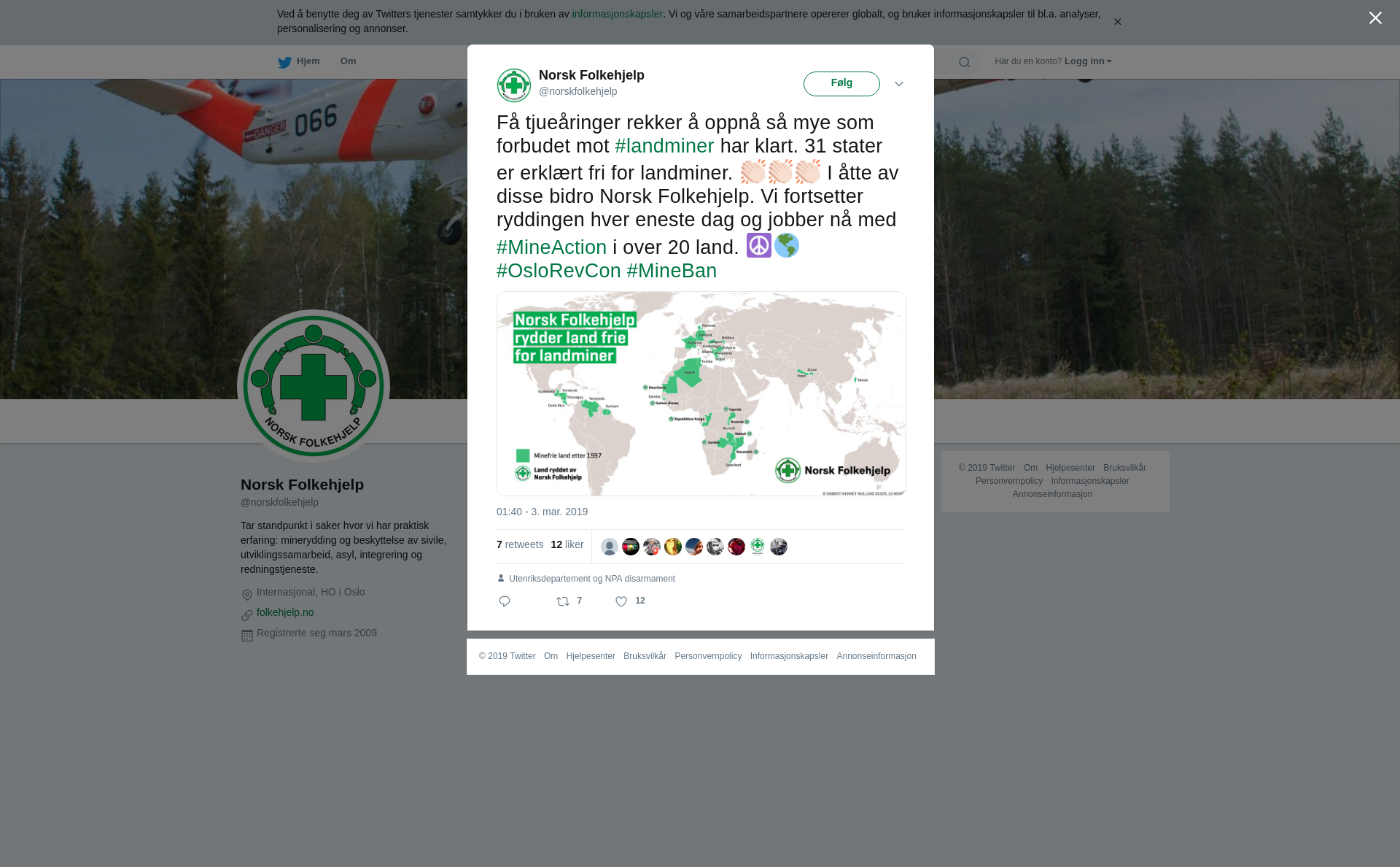 RT @norskfolkehjelp: Få tjueåringer rekker å oppnå så mye som forbudet mot #landminer har klart. 31 stater er erklært fri for landminer. 👏🏻👏🏻👏🏻 I åtte av disse bidro Norsk Folkehjelp. Vi fortsetter ryddingen hver eneste dag og jobber nå med #MineAction i over 20 land. ☮️🌎 #OsloRevCon #MineBan https://t.co/Y2QGqZ625j
