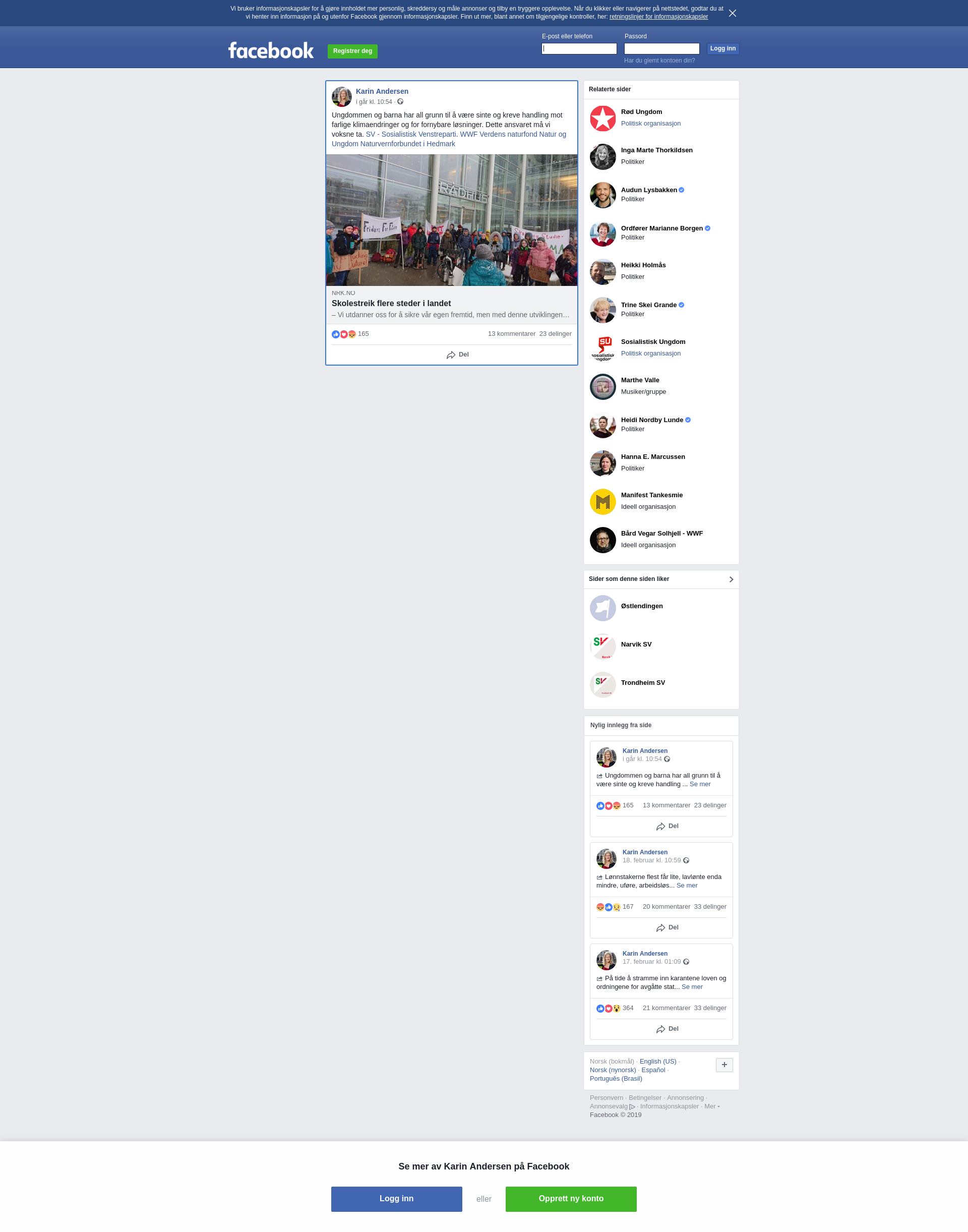 Ungdommen og barna har all grunn til å være sinte og kreve handling mot farlige klimaendringer og for fornybare løsninger. Dette ansvaret må vi voksne ta. SV - Sosialistisk Venstreparti. WWF Verdens naturfond Natur og Ungdom Naturvernforbundet i Hedmark