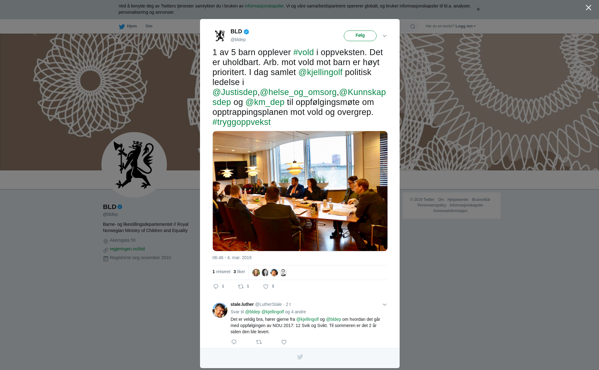1 av 5 barn opplever #vold i oppveksten. Det er uholdbart. Arb. mot vold mot barn er høyt prioritert. I dag samlet @kjellingolf politisk ledelse i @Justisdep,@helse_og_omsorg,@Kunnskapsdep og @km_dep til oppfølgingsmøte om opptrappingsplanen mot vold og overgrep. #tryggoppvekst https://t.co/YhIGrQtb44