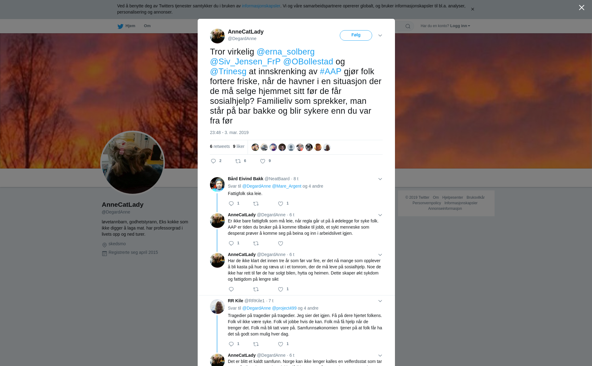 RT @DegardAnne: Tror virkelig @erna_solberg @Siv_Jensen_FrP @OBollestad og @Trinesg at innskrenking av #AAP gjør folk fortere friske, når de havner i en situasjon der de må selge hjemmet sitt før de får sosialhjelp? Familieliv som sprekker, man står på bar bakke og blir sykere enn du var fra før