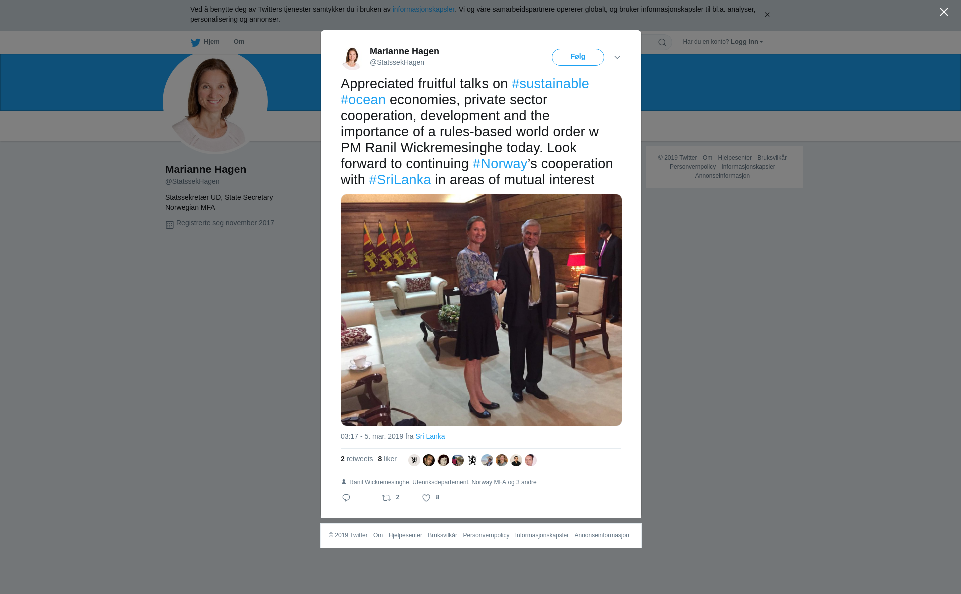 RT @StatssekHagen: Appreciated fruitful talks on #sustainable #ocean economies, private sector cooperation, development and the importance of a rules-based world order w PM Ranil Wickremesinghe today. Look forward to continuing #Norway’s cooperation with #SriLanka in areas of mutual interest https://t.co/oHj263Fwll