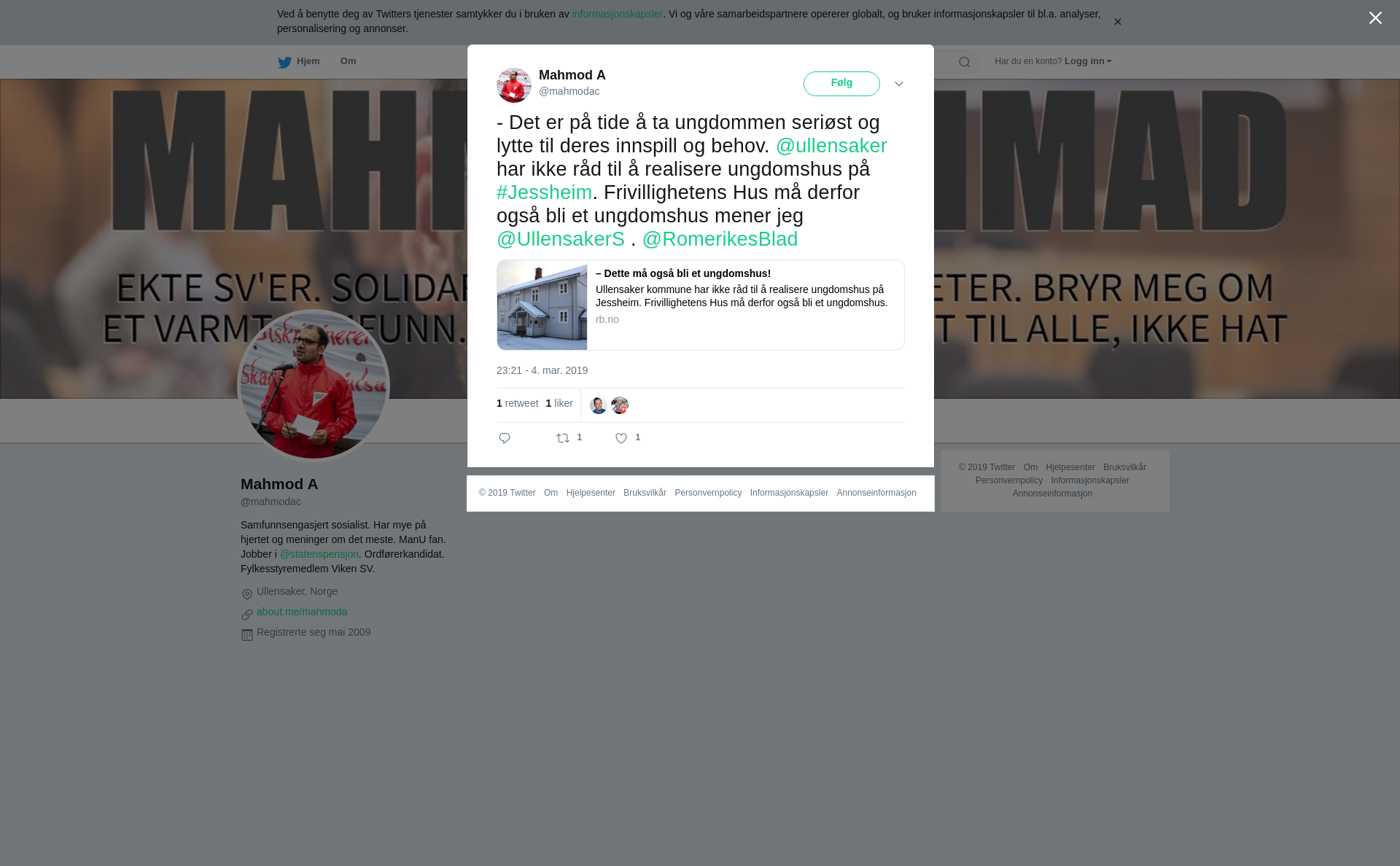 RT @mahmodac: - Det er på tide å ta ungdommen seriøst og lytte til deres innspill og behov. @ullensaker har ikke råd til å realisere ungdomshus på #Jessheim. Frivillighetens Hus må derfor også bli et ungdomshus mener jeg @UllensakerS . @RomerikesBlad https://t.co/GQuoZlhjxn