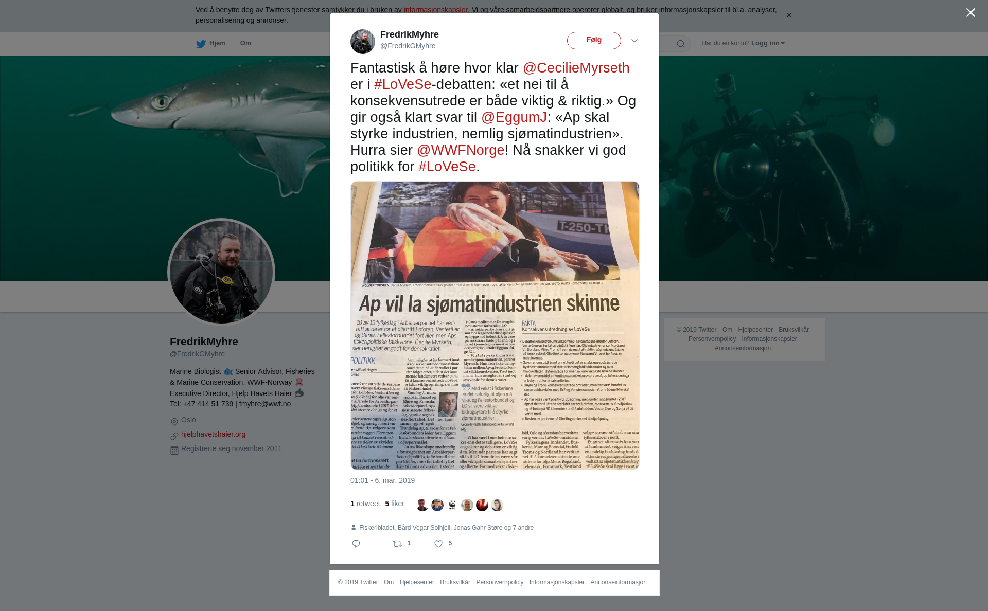 RT @FredrikGMyhre: Fantastisk å høre hvor klar @CecilieMyrseth er i #LoVeSe-debatten: «et nei til å konsekvensutrede er både viktig & riktig.» Og gir også klart svar til @EggumJ: «Ap skal styrke industrien, nemlig sjømatindustrien». Hurra sier @WWFNorge! Nå snakker vi god politikk for #LoVeSe. https://t.co/rboFhpog62