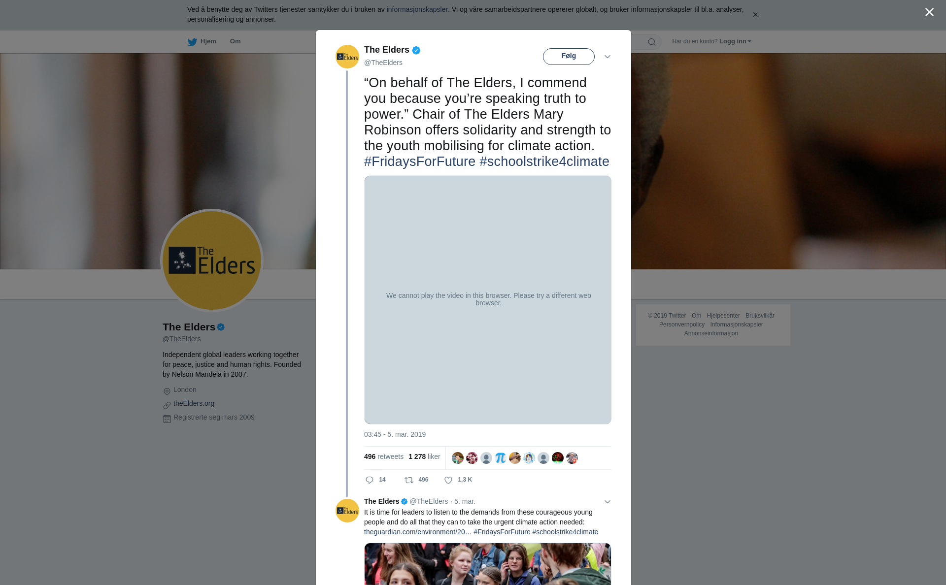 RT @TheElders: “On behalf of The Elders, I commend you because you’re speaking truth to power.” Chair of The Elders Mary Robinson offers solidarity and strength to the youth mobilising for climate action. #FridaysForFuture #schoolstrike4climate https://t.co/jDDhe6r1XG