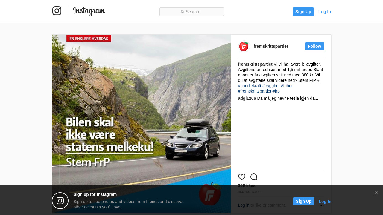 Vi vil ha lavere bilavgifter. Avgiftene er redusert med 1,5 milliarder. Blant annet er årsavgiften satt ned med 380 kr. Vil du at avgiftene skal videre ned? Stem FrP 👍 #handlekraft #trygghet #frihet #fremskrittspartiet #frp