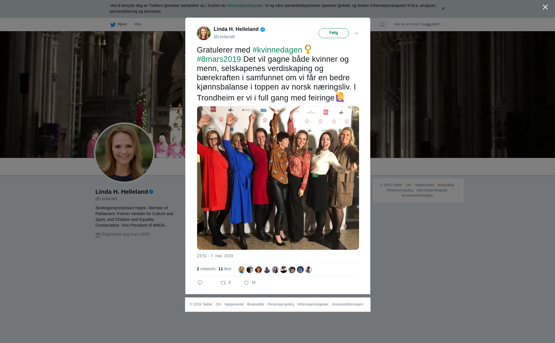 Gratulerer med #kvinnedagen #8mars2019 Det vil gagne både kvinner og menn, selskapenes verdiskaping og bærekraften i samfunnet om vi får en bedre kjønnsbalanse i toppen av norsk næringsliv. I Trondheim er vi i full gang med feiringe🙋♀️ https://t.co/EFVnGg5jCZ