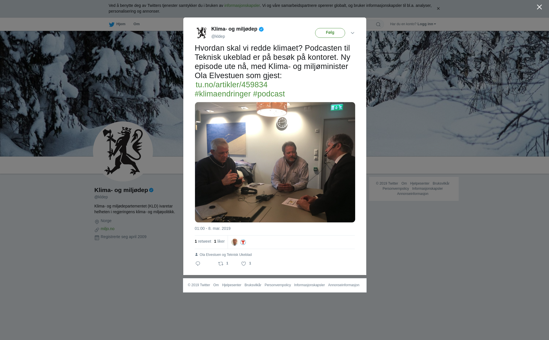 Hvordan skal vi redde klimaet? Podcasten til Teknisk ukeblad er på besøk på kontoret. Ny episode ute nå, med Klima- og miljøminister Ola Elvestuen som gjest: https://t.co/1lW1NP2DBh #klimaendringer #podcast https://t.co/7BOUiU8UuU