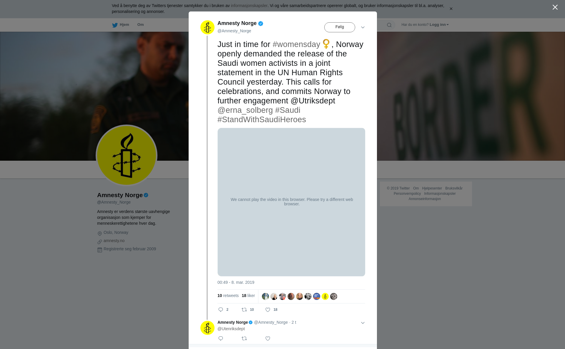 RT @Amnesty_Norge: Just in time for #womensday, Norway openly demanded the release of the Saudi women activists in a joint statement in the UN Human Rights Council yesterday. This calls for celebrations, and commits Norway to further engagement @Utriksdept @erna_solberg #Saudi #StandWithSaudiHeroes https://t.co/Hl2asdZfPV