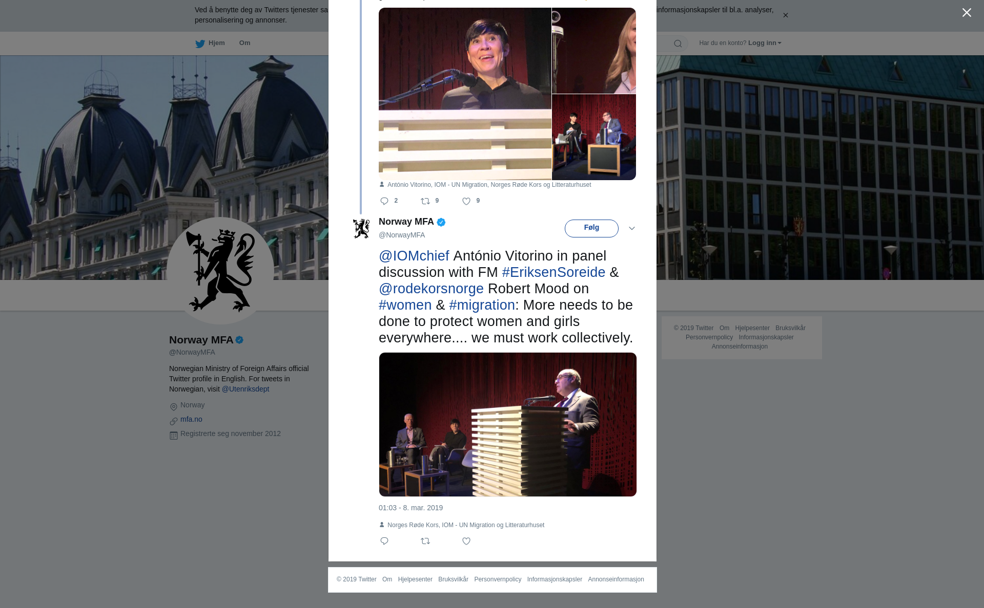 @IOMchief António Vitorino in panel discussion with FM #EriksenSoreide & @rodekorsnorge Robert Mood on #women & #migration: More needs to be done to protect women and girls everywhere.... we must work collectively. https://t.co/4oqPcPsKo5