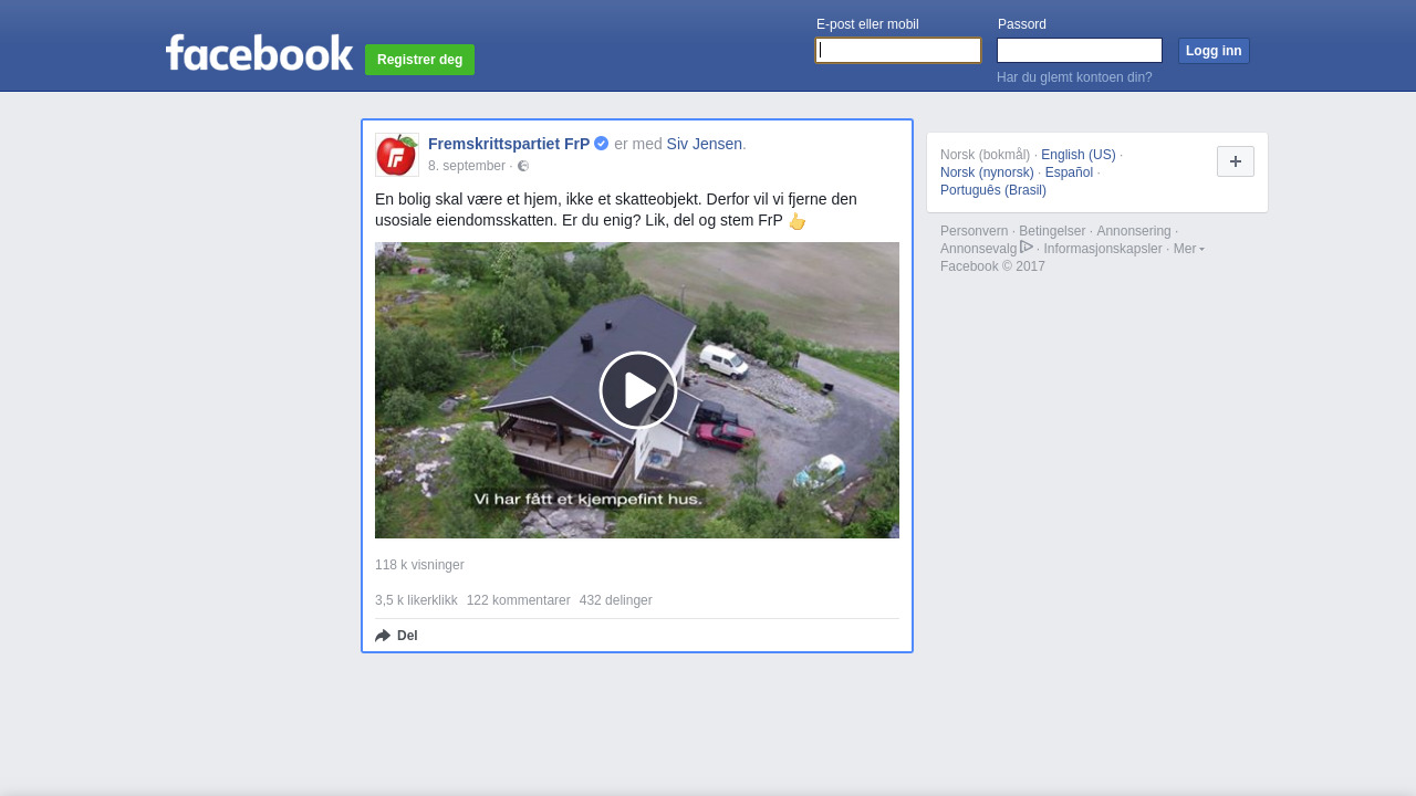 En bolig skal være et hjem, ikke et skatteobjekt. Derfor vil vi fjerne den usosiale eiendomsskatten. Er du enig? Lik, del og stem FrP 👍