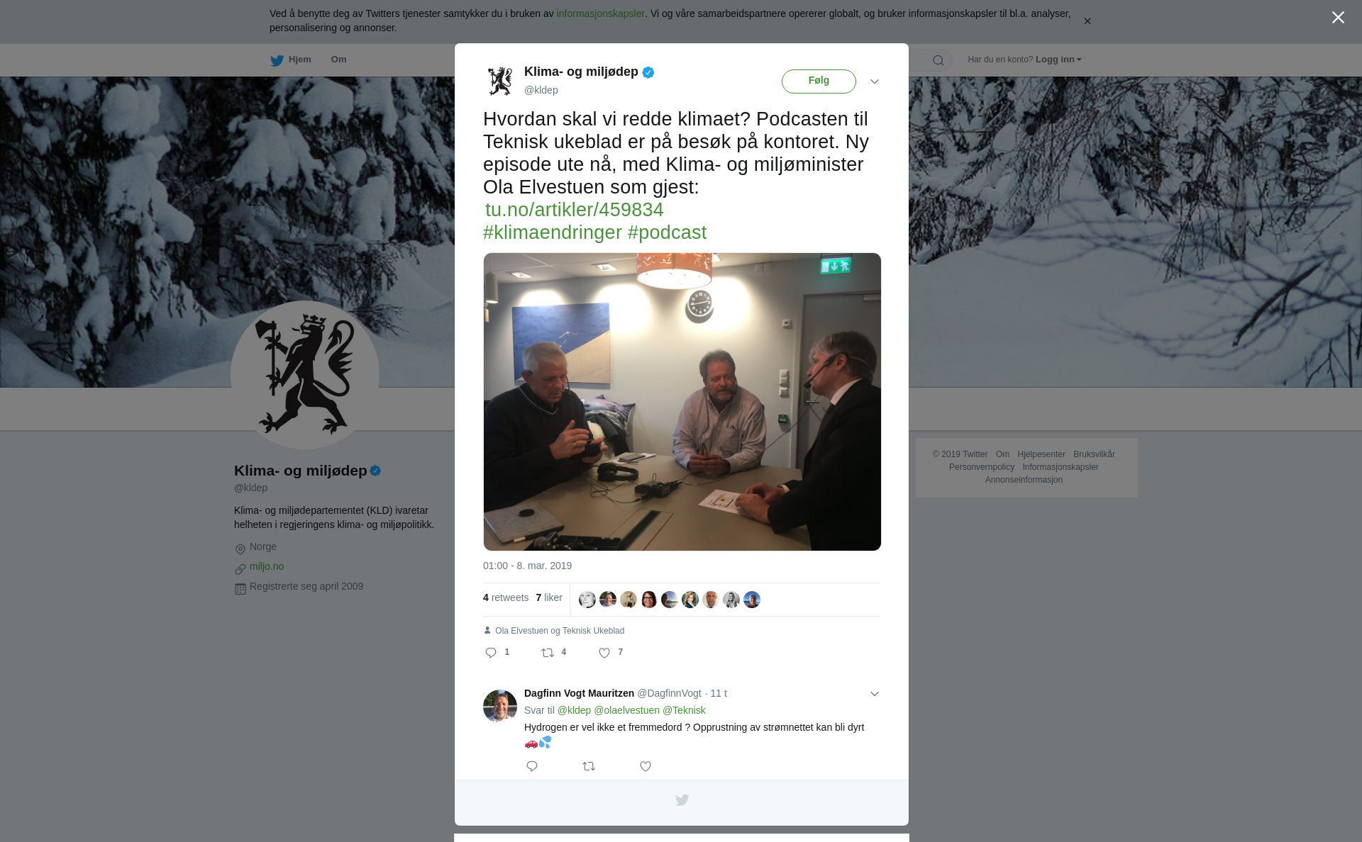 RT @kldep: Hvordan skal vi redde klimaet? Podcasten til Teknisk ukeblad er på besøk på kontoret. Ny episode ute nå, med Klima- og miljøminister Ola Elvestuen som gjest: