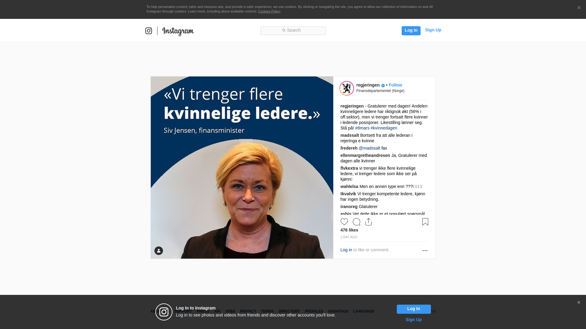 - Gratulerer med dagen! Andelen kvinneligere ledere har riktignok økt (56% i off.sektor), men vi trenger fortsatt flere kvinner i ledende posisjoner. Likestilling lønner seg. Stå på! #8mars #kvinnedagen