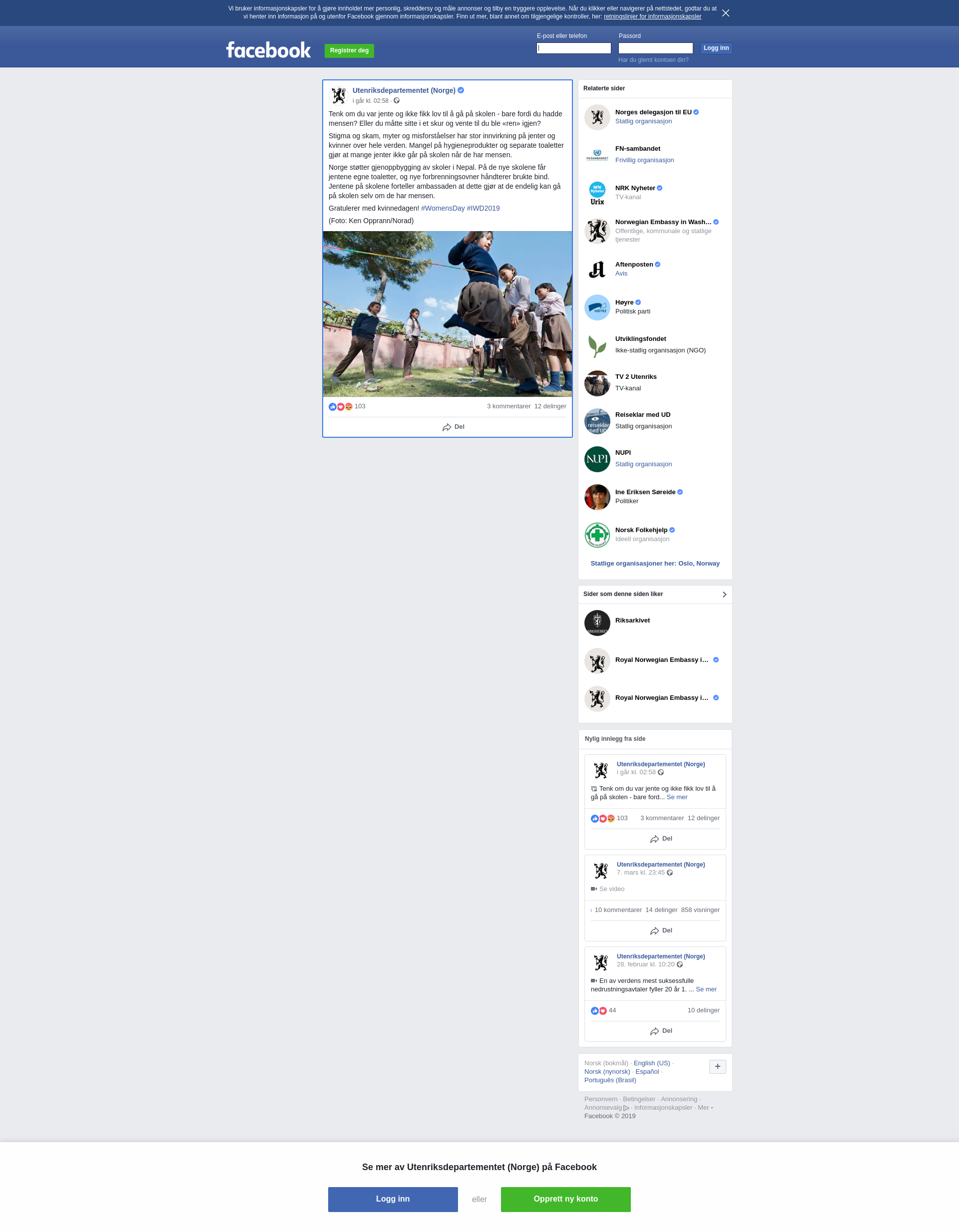 Norge støtter gjenoppbygging av skoler i Nepal. På de nye skolene får jentene egne toaletter, og nye forbrenningsovner håndterer brukte bind. Jentene på skolene forteller ambassaden at dette gjør at de endelig kan gå på skolen selv om de har mensen.