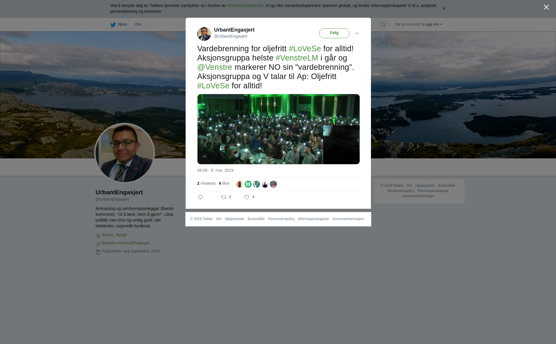 RT @UrbantEngasjert: Vardebrenning for oljefritt #LoVeSe for alltid! Aksjonsgruppa helste #VenstreLM i går og @Venstre markerer NO sin "va…