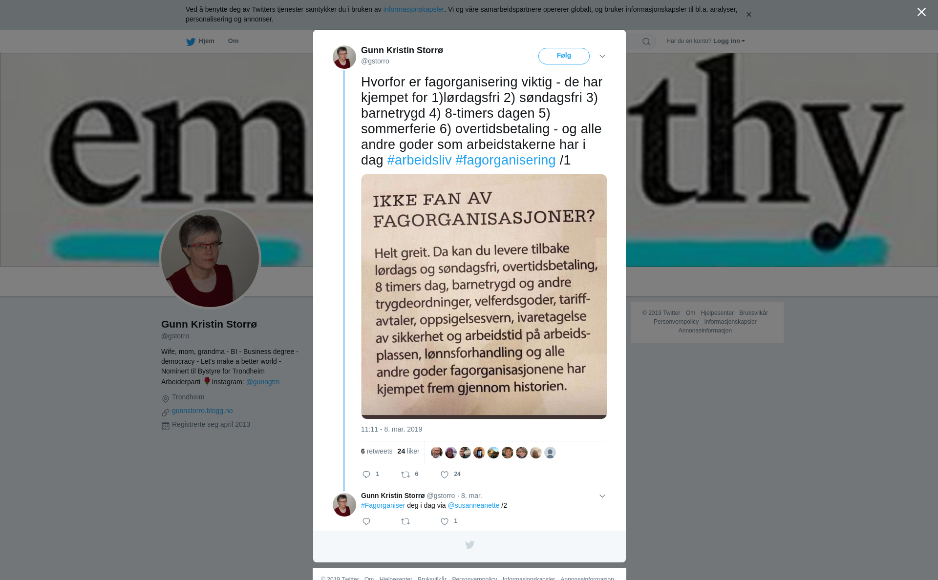 RT @gstorro: Hvorfor er fagorganisering viktig - de har kjempet for 1)lørdagsfri 2) søndagsfri 3) barnetrygd 4) 8-timers dagen 5) sommerferie 6) overtidsbetaling - og alle andre goder som arbeidstakerne har i dag #arbeidsliv #fagorganisering /1 https://t.co/EcyZi5rNUq