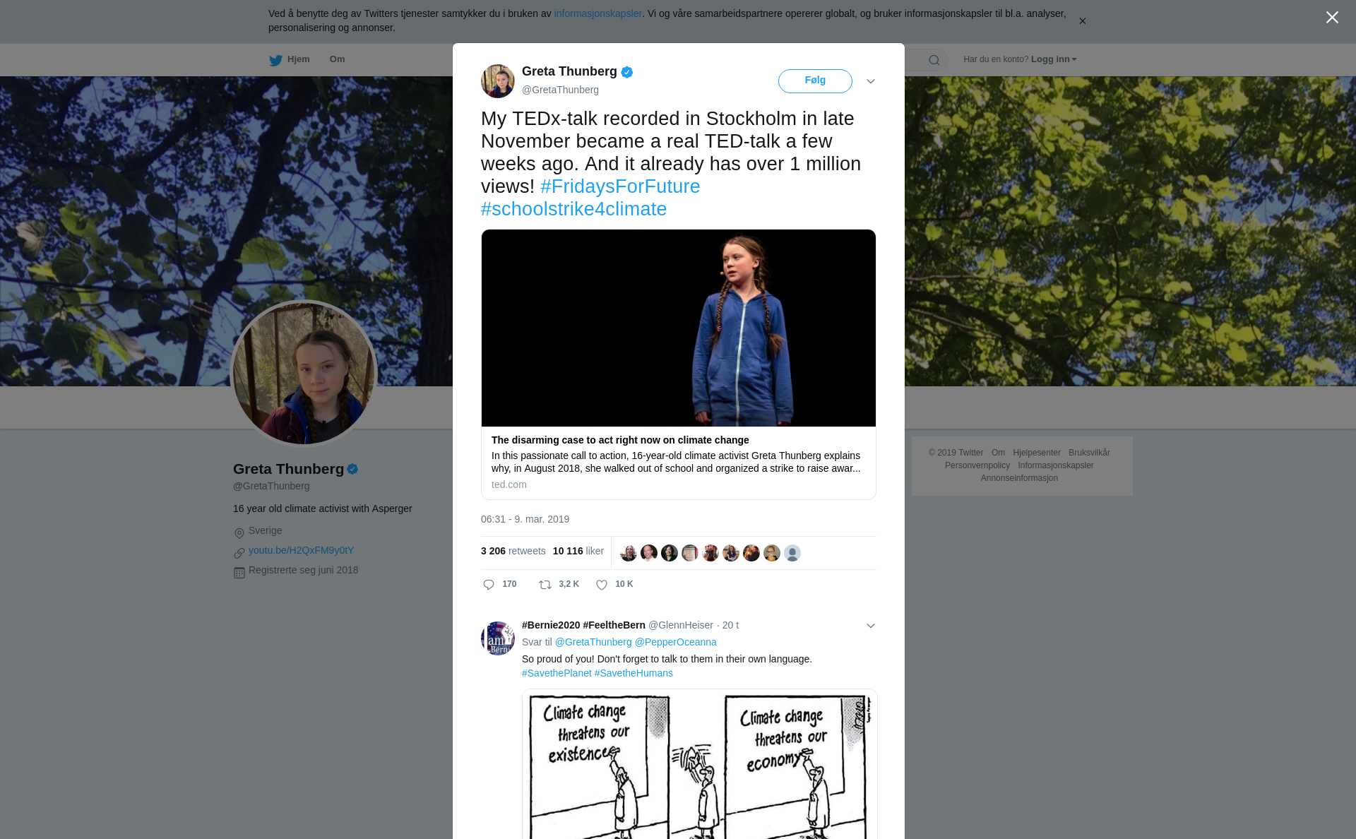 RT @GretaThunberg: My TEDx-talk recorded in Stockholm in late November became a real TED-talk a few weeks ago. And it already has over 1 million views! #FridaysForFuture #schoolstrike4climate https://t.co/9J12SGny9Q