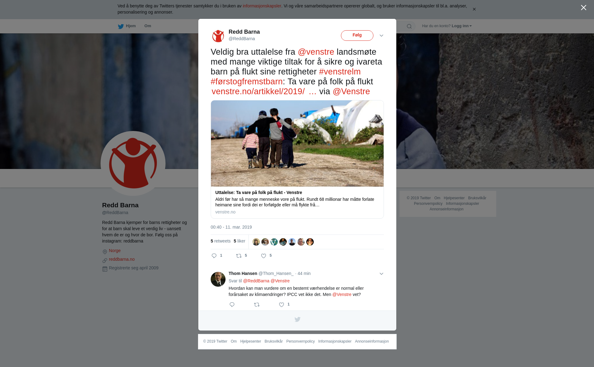 RT @ReddBarna: Veldig bra uttalelse fra @venstre landsmøte med mange viktige tiltak for å sikre og ivareta barn på flukt sine rettigheter #venstrelm #førstogfremstbarn: Ta vare på folk på flukt https://t.co/ZO3Fh8Ehs4 via @Venstre